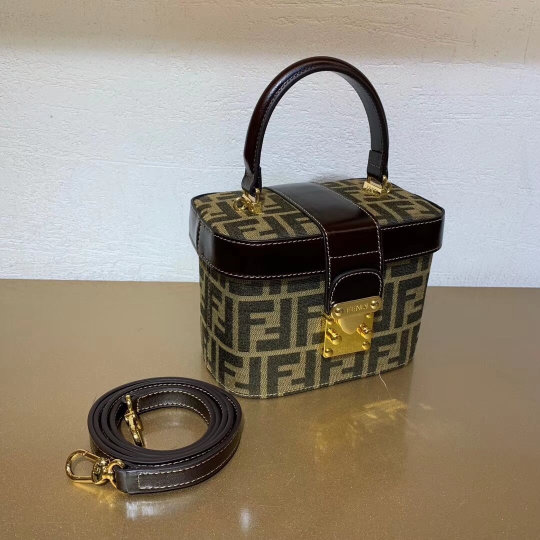 Crafted in zucca canvas, this luxurious makeup case comes in brown
