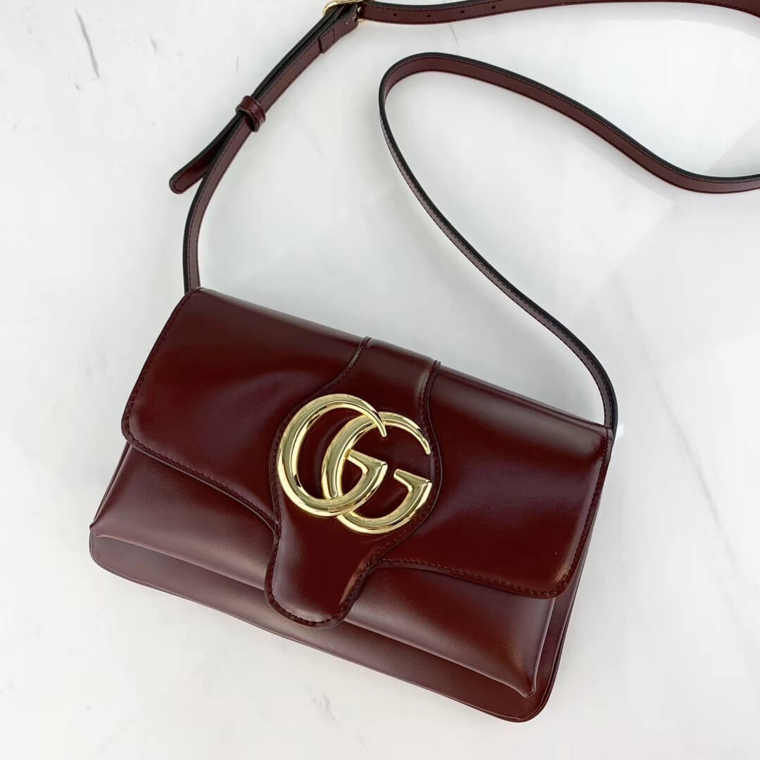 Brought back from the 1970s archives, the Double G hardware defines a new line of shoulder bags. The oversize emblem decorates the exaggerated flap closure of a small shoulder bag. The silhouette has a vintage feel with an adjustable shoulder strap, crafted in black leather with a rich softness and shiny look. The accessory was first presented in the Cruise 2019 collection, revealed in the evocative setting of the Promenade des Alyscamps, an ancient Roman necropolis in the French town of Arles—which gives the name to the line.