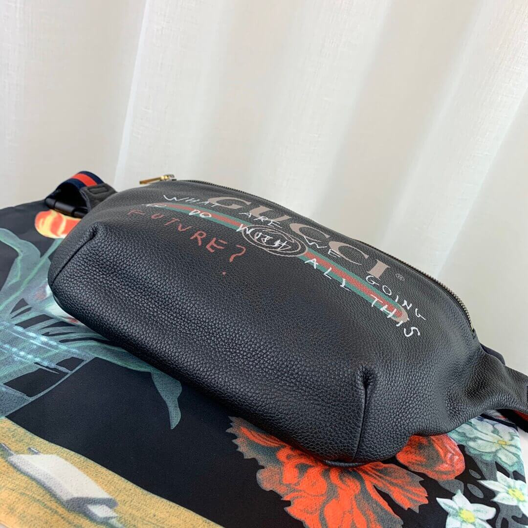 Inspired by vintage prints from the eighties, the Gucci logo is brought to the forefront. The retro-style motif is presented on the front of a belt bag in supple, textured leather.