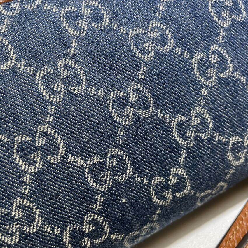 Inspired by vintage styles, the mini Ophidia bag is presented with a soft construction and enameled monogram detail. Here, the accessory is presented in eco washed GG jacquard denim.