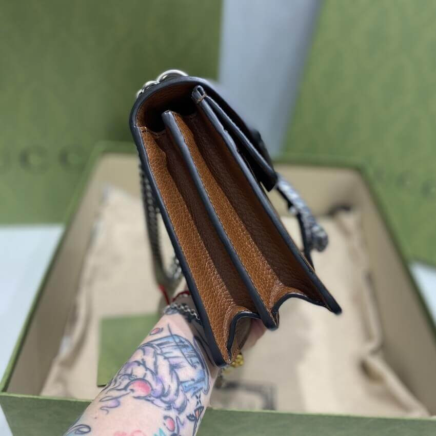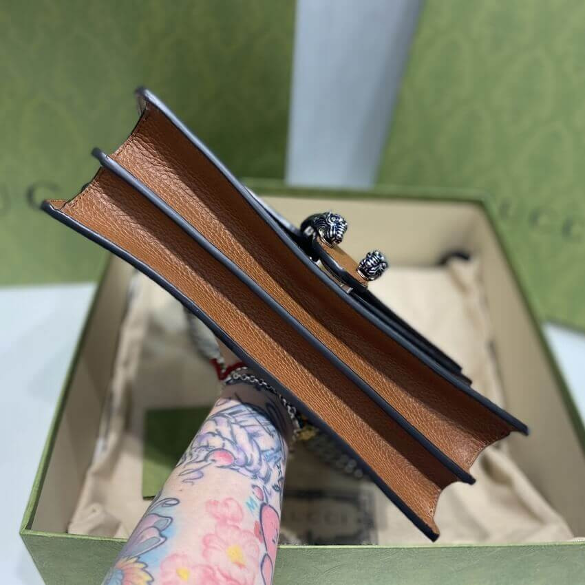 A message about leaving fashion’s old rules behind, the Epilogue collection conveys the idea that pieces should be timeless–not just in fashion for one season. Among the designs are Alessandro Michele’s most emblematic styles and motifs from the past 5 years, like the Dionysus. One of the House's Beloved lines, the bag is synonymous with its textured tiger head closure. Here, it appears as a small shoulder bag presented in organic GG jacquard denim.
