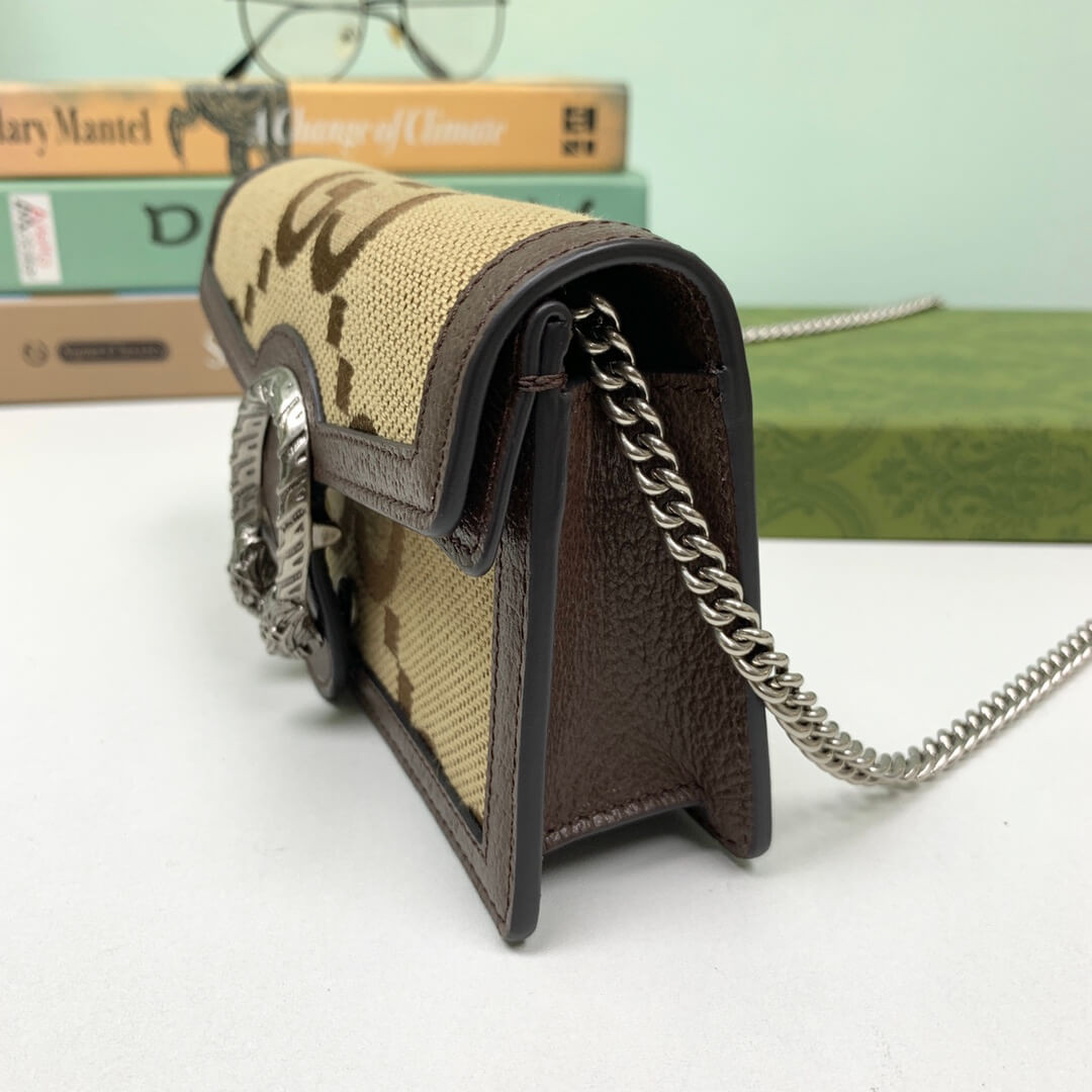 With its super mini size and maxi logo pattern, this Dionysus bag has a defined retro feel. The petite accessory expresses the House's fascination with the past. Each collection is a journey through different decades and eras, combining vintage elements with archival codes or contemporary details to create new designs that exist outside of space and time.