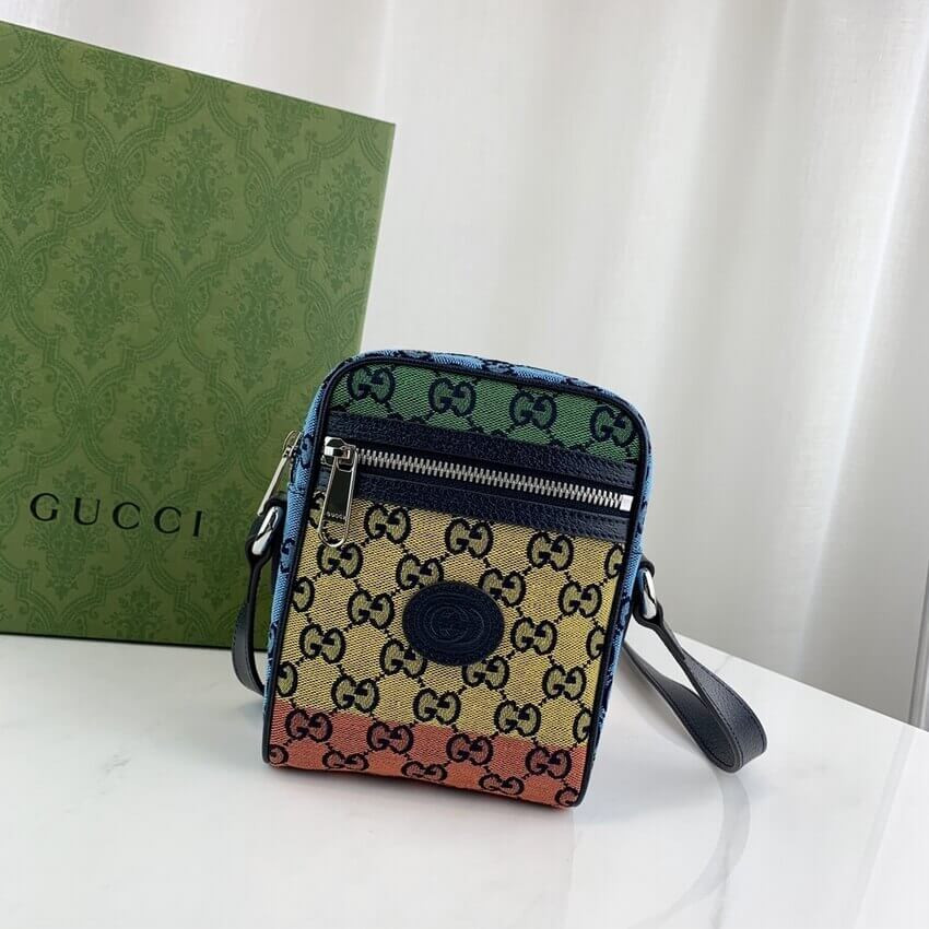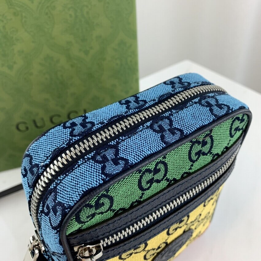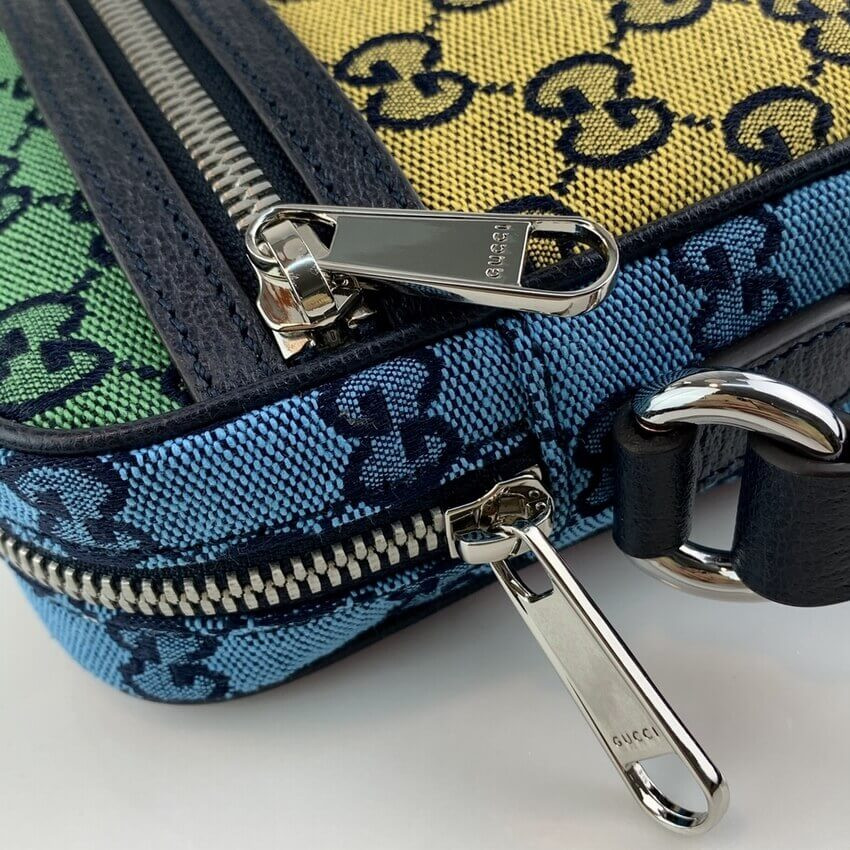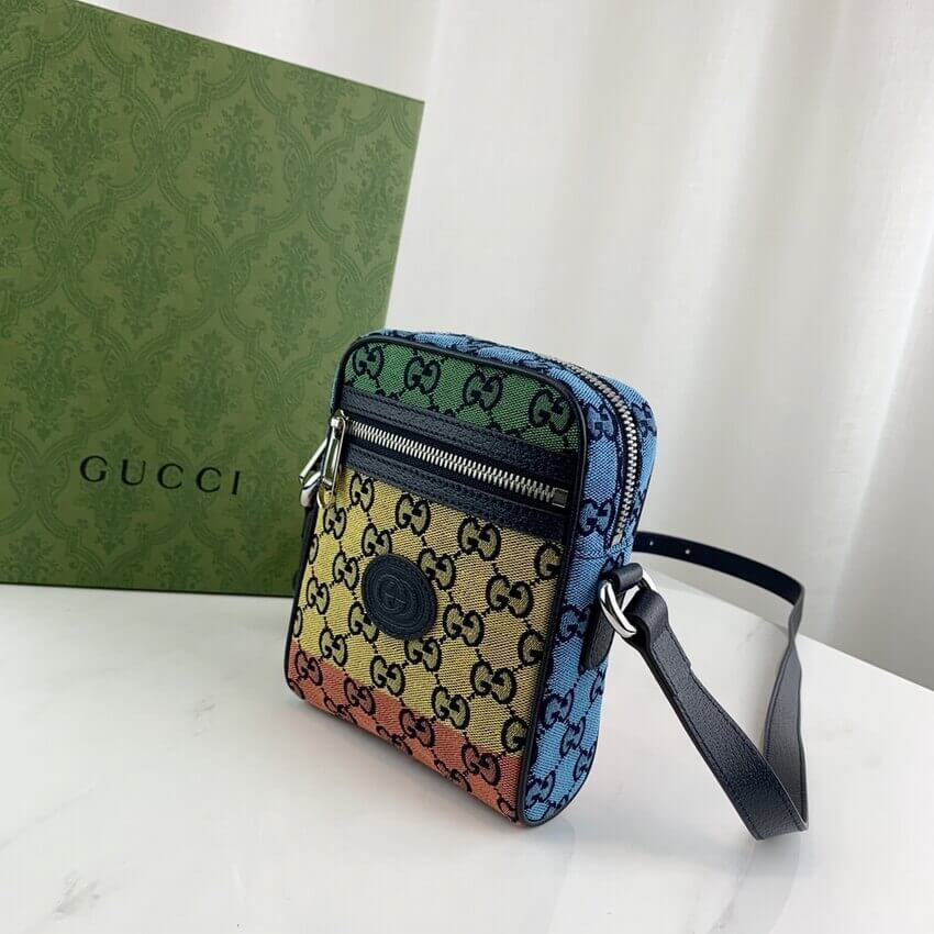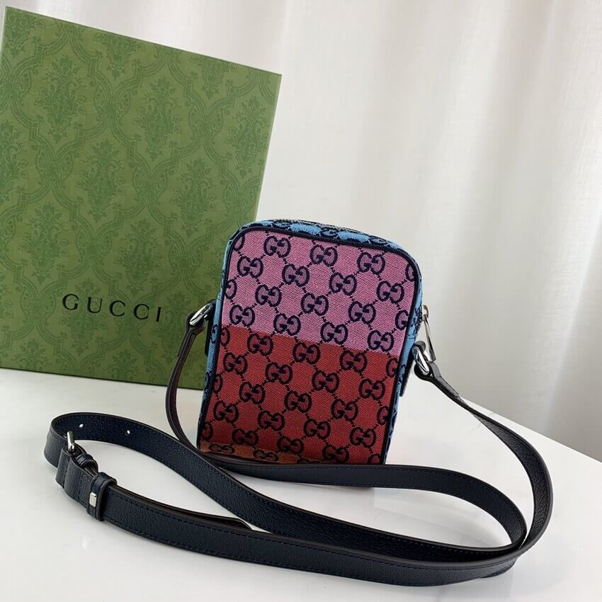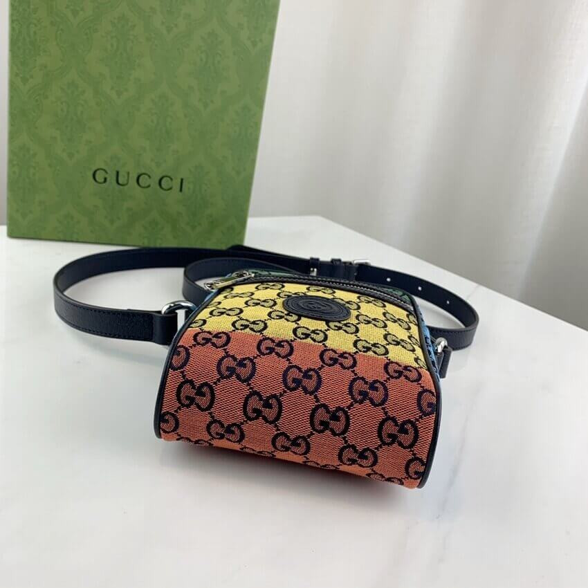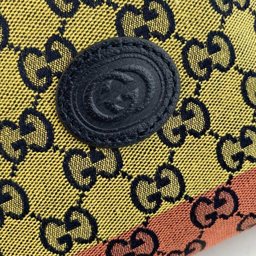Embracing the new possibilities that lie within variations of the Gucci archives, various pieces throughout the collection provide a new lens through which to view the emblematic GG rhombi motif. Already an evolution of the House logo, it is once again reimagined in a series of bright colors—a theme that has become synonymous with the Creative Director’s vision. This bag is part of the GG Multicolor collection.