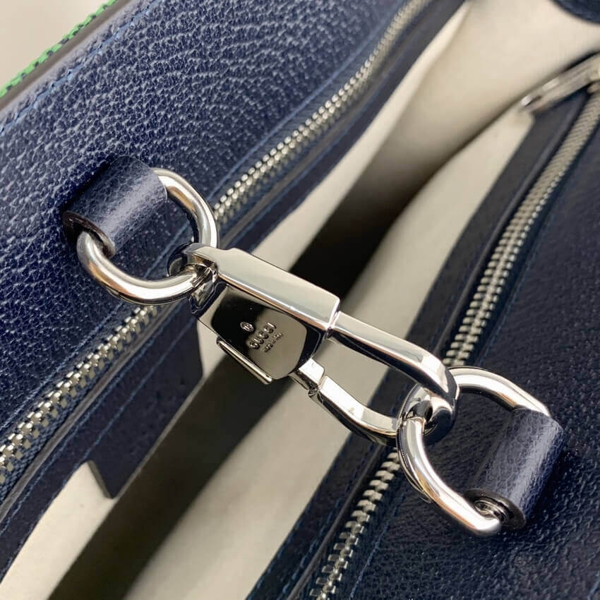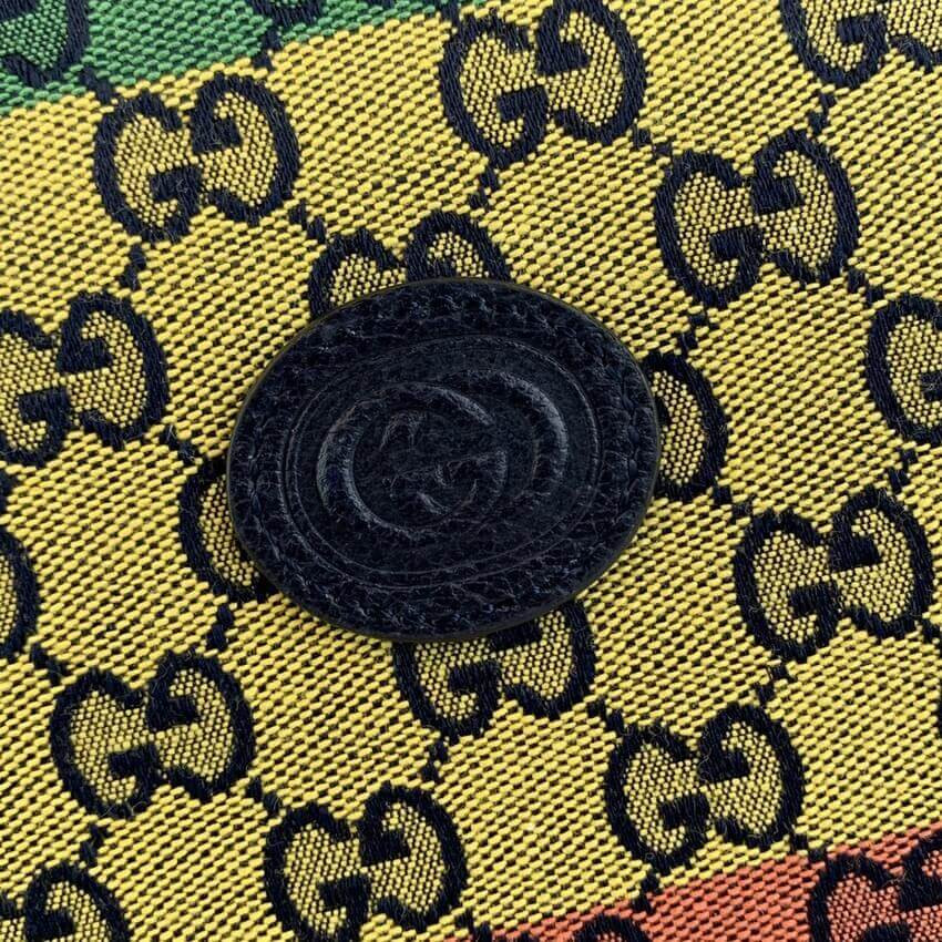 Embracing the new possibilities that lie within variations of the Gucci archives, various pieces throughout the collection provide a new lens through which to view the emblematic GG rhombi motif. Already an evolution of the House logo, it is once again reimagined in a series of bright colours—a theme that has become synonymous with the Creative Director’s vision. This large tote bag is part of the GG Multicolour collection.