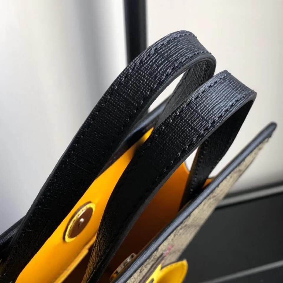 A farmyard animal that recalls children's picture books, the chick is presented on this kid's tote as an intricate three-dimensional appliqué. The House's monogram canvas is finished with contrast black trims.