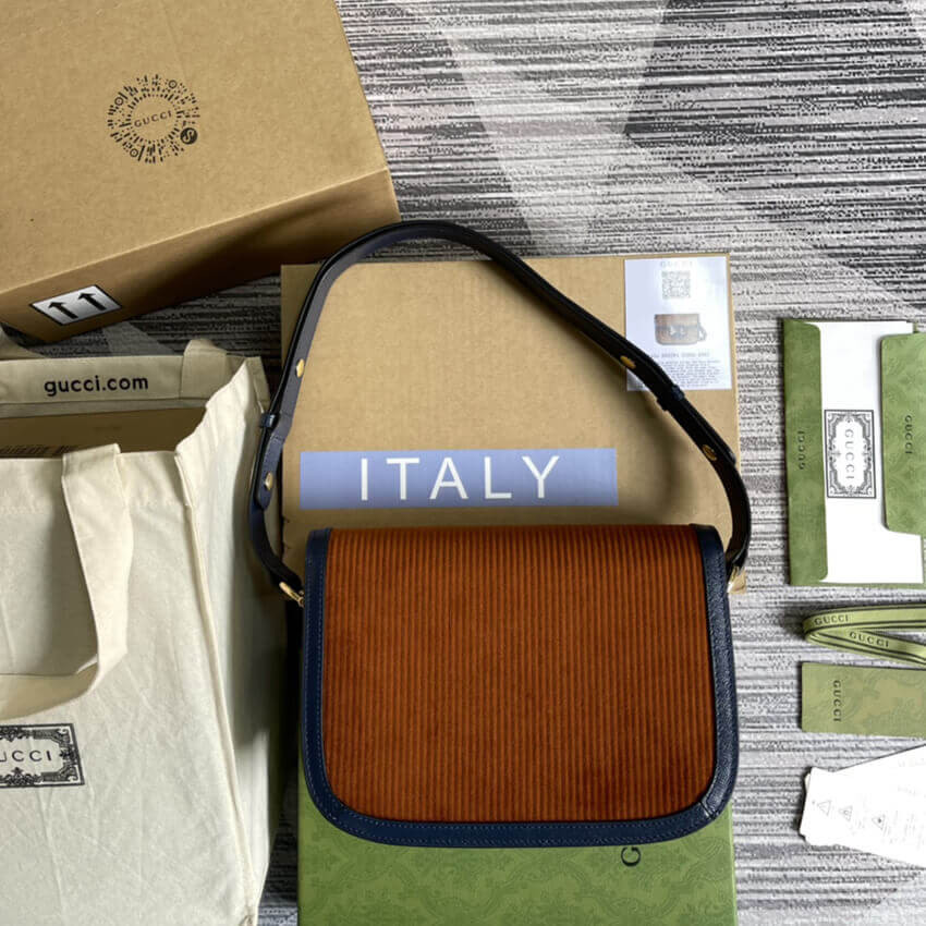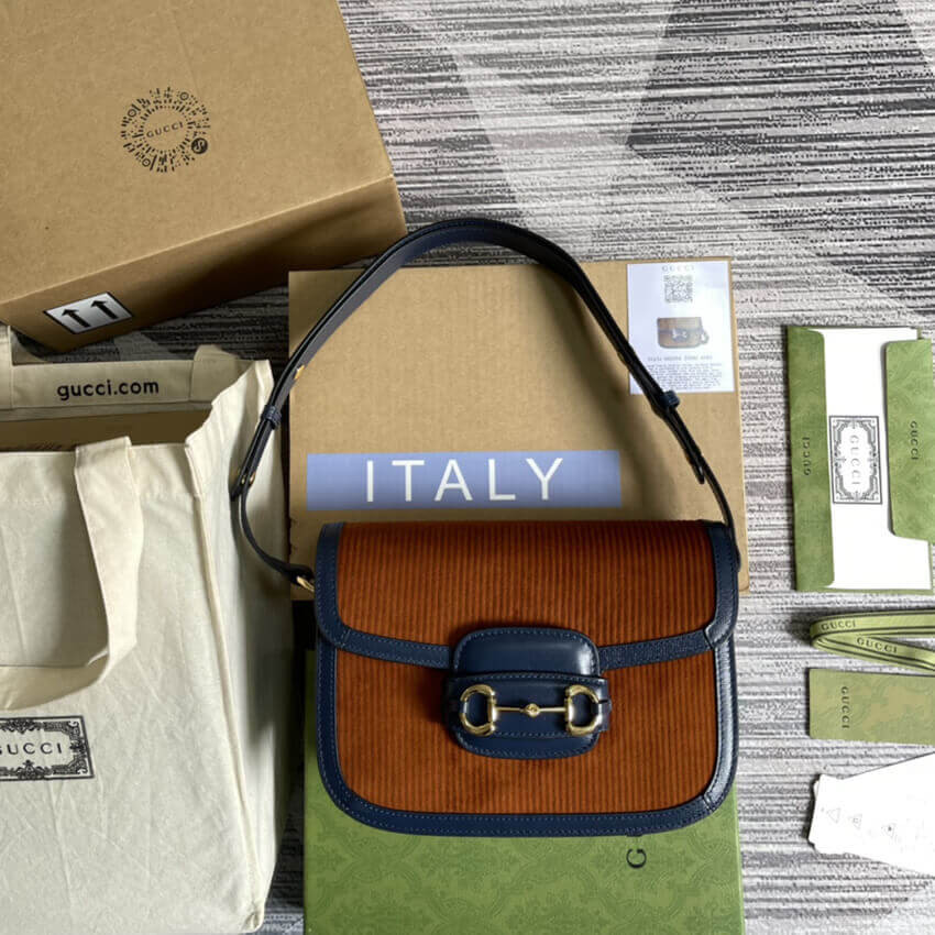• Gucci Horsebit 1955 Small Bag 602204 Brown Corduroy
