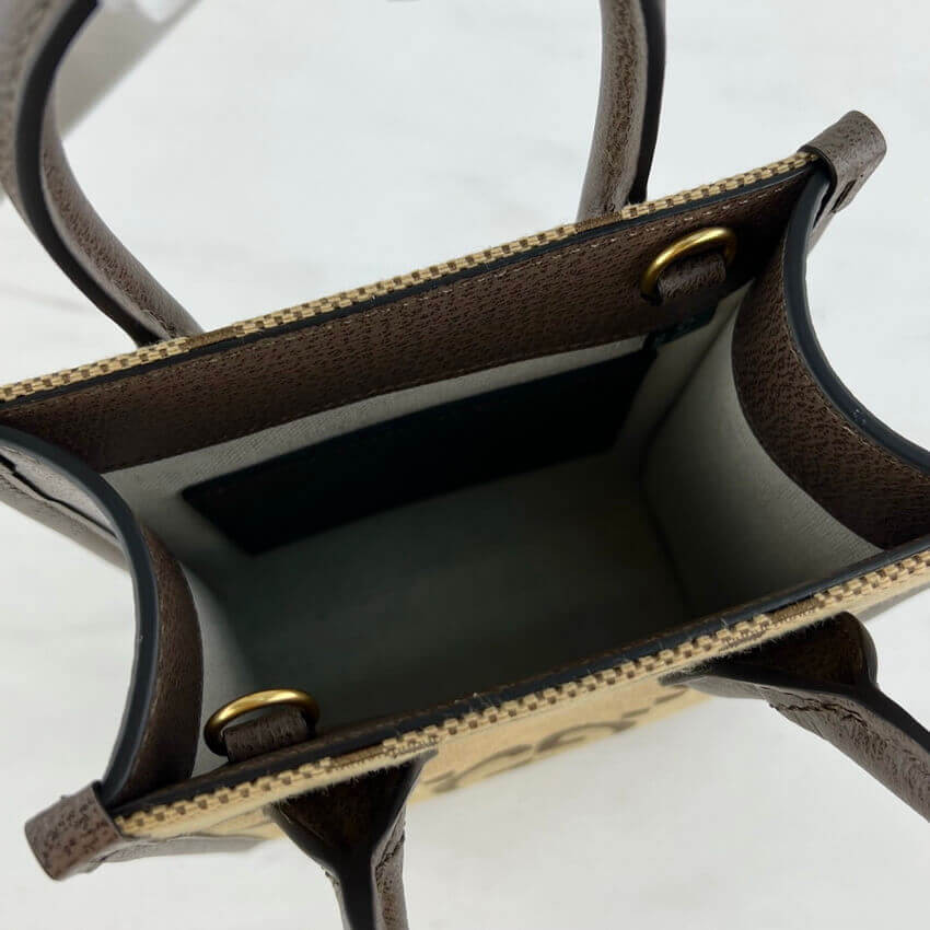First seen as part of Gucci Aria, the jumbo version of the emblematic GG motif returns atop signature luggage pieces, imbuing each design with a pronounced logo feel. This mini tote bag is accentuated by the signature green and red House Web, a contemporary take on a Gucci archival belt buckle from the '70s.