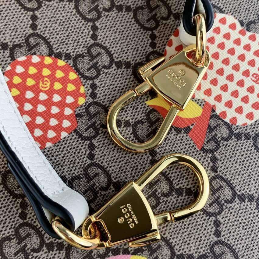 An emblem of the Gucci's playful spirit, fruits and vegetables have become contemporary House codes that animate the latest collections. Speaking to this theme, this small tote is defined by a whimsical apple motif.