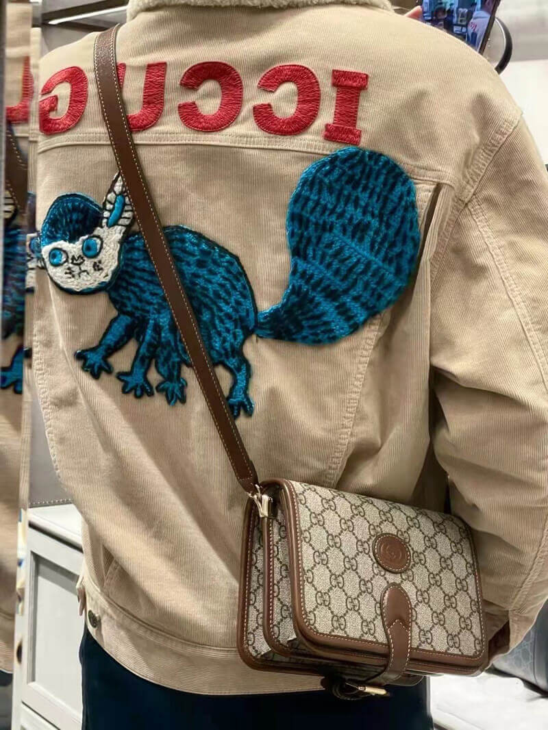 The Interlocking G has remained one of the most symbolic codes of the House since its introduction. The distinguishing emblem appears as a leather detail atop this shoulder bag. Completing the design's logo feel, the style is crafted from monogram canvas.
