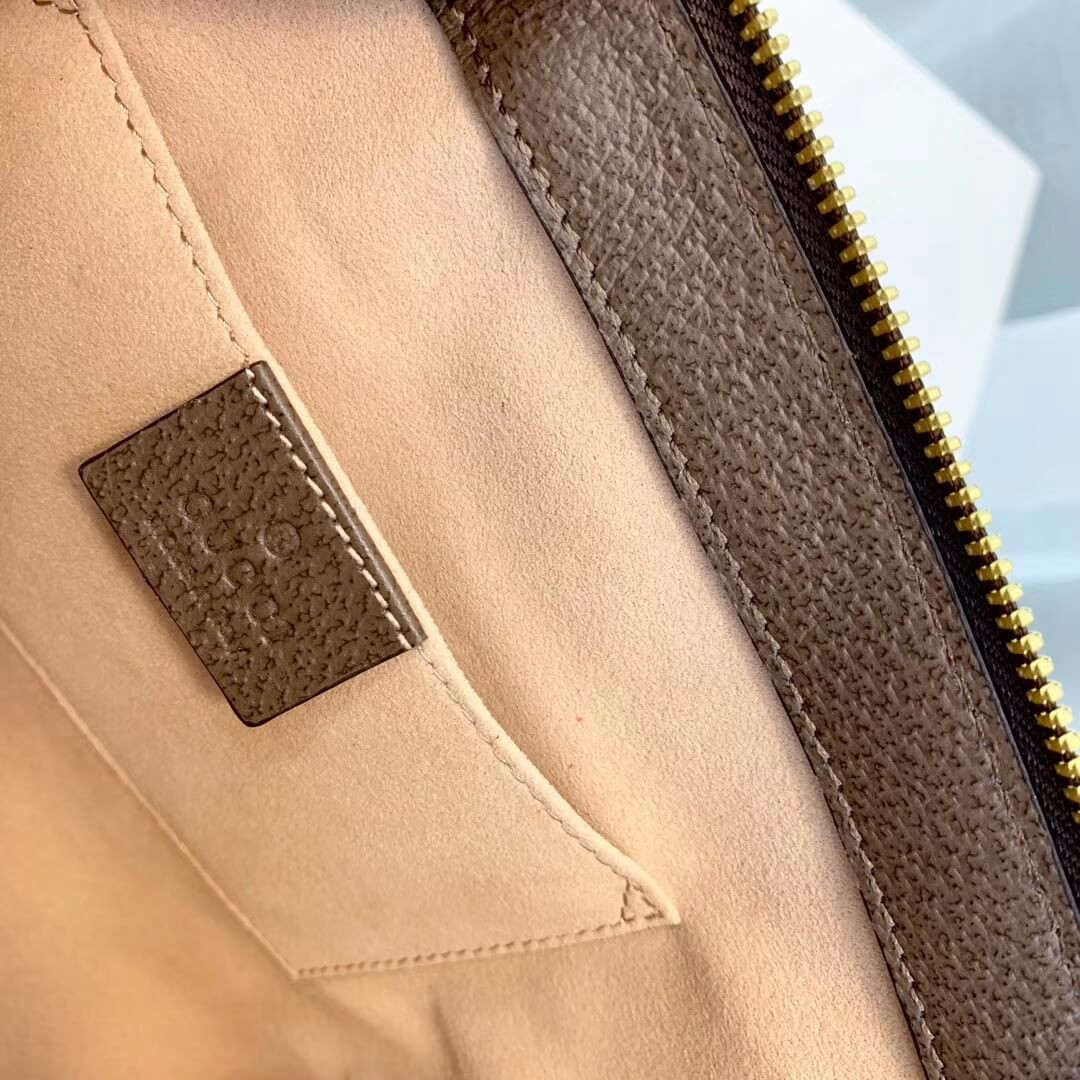 The world of Ophidia evolves with the introduction of a small top handle tote with a detachable shoulder strap. Crafted in GG Supreme canvas with inlaid green and red Web stripe, the accessory is enhanced by a petite play on the Double G, an archival Gucci code from the '70s that appears atop a leather tab detail and on the zipper pull.