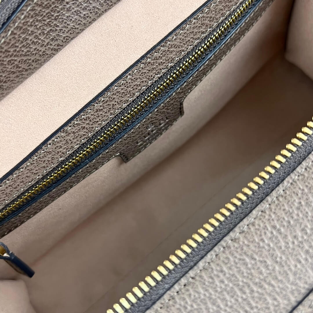 Mirroring the material's historic origins, GG Supreme is introduced in a timeless mix of blue and beige for Gucci Love Parade. The canvas has come to the front of each collection decade after decade to become a hallmark of the House. Here, the classic palette defines this small Ophidia tote bag.