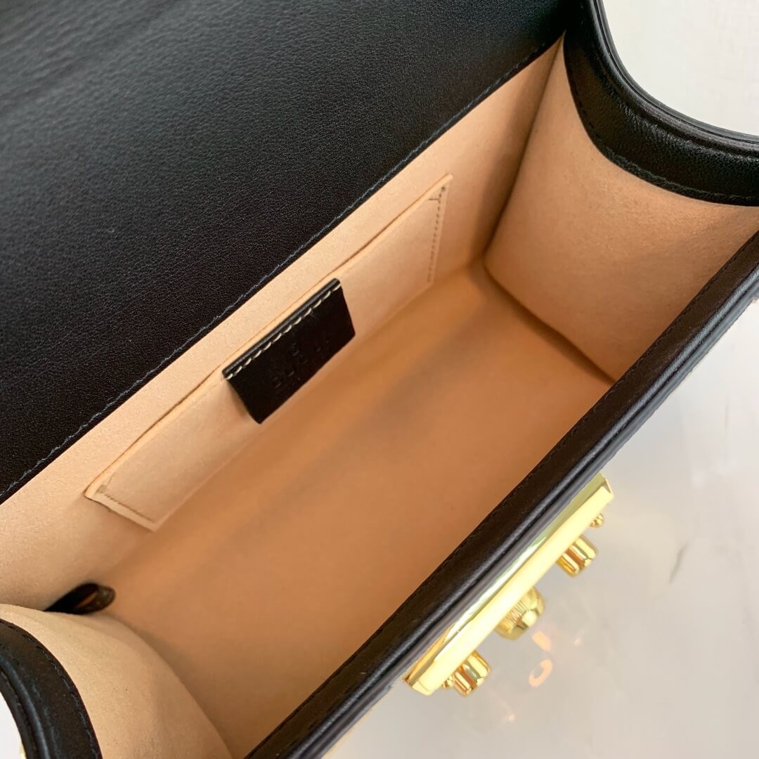 A small structured chain shoulder bag with a key lock closure pulled straight from the archives, the key is placed in a leather key case. The GG Supreme canvas is crafted from a coated microfiber fabric with the GG motif. The abstract design is made from a super soft, delicate leather with a soft shiny metallic leather edge.