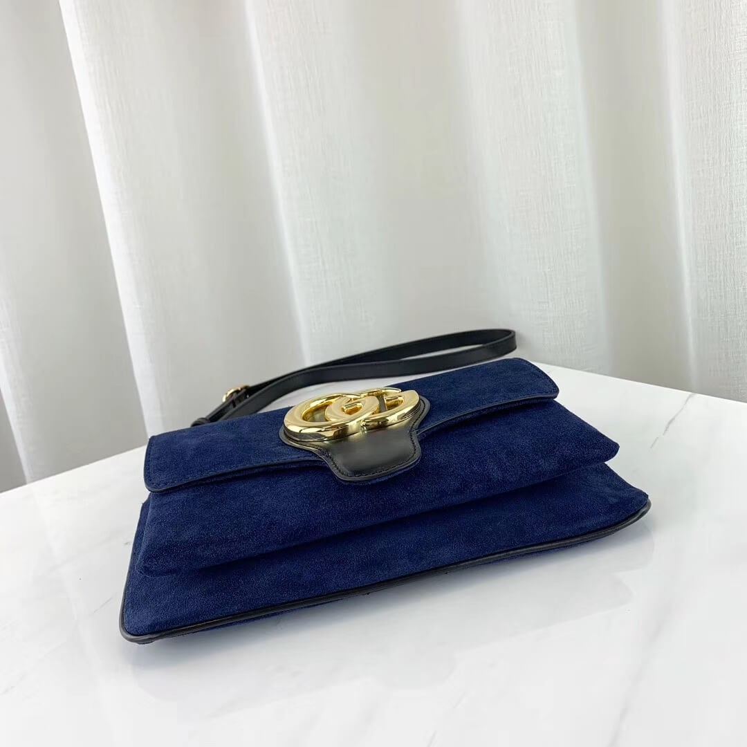 Brought back from the 1970s archives, the Double G hardware defines a new line of shoulder bags. The oversize emblem decorates the exaggerated flap closure of a small shoulder bag. The silhouette has a vintage feel with an adjustable shoulder strap, crafted in black leather with a rich softness and shiny look. The accessory was first presented in the Cruise 2019 collection, revealed in the evocative setting of the Promenade des Alyscamps, an ancient Roman necropolis in the French town of Arles—which gives the name to the line.