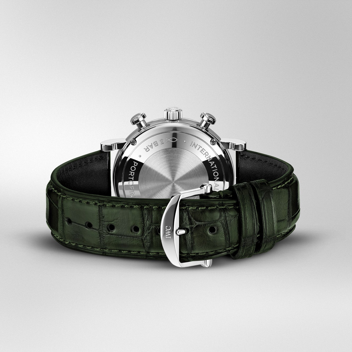 Stainless Steel Case. Self-winding. Diameter 39.0 mm. Green alligator leather strap. Strap width 20.0 mm.