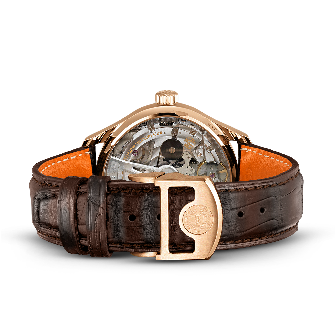 18 ct Red Gold case. Self-winding. Diameter 42.3 mm. Dark brown alligator leather strap by Santoni. Band width 22.0 mm.