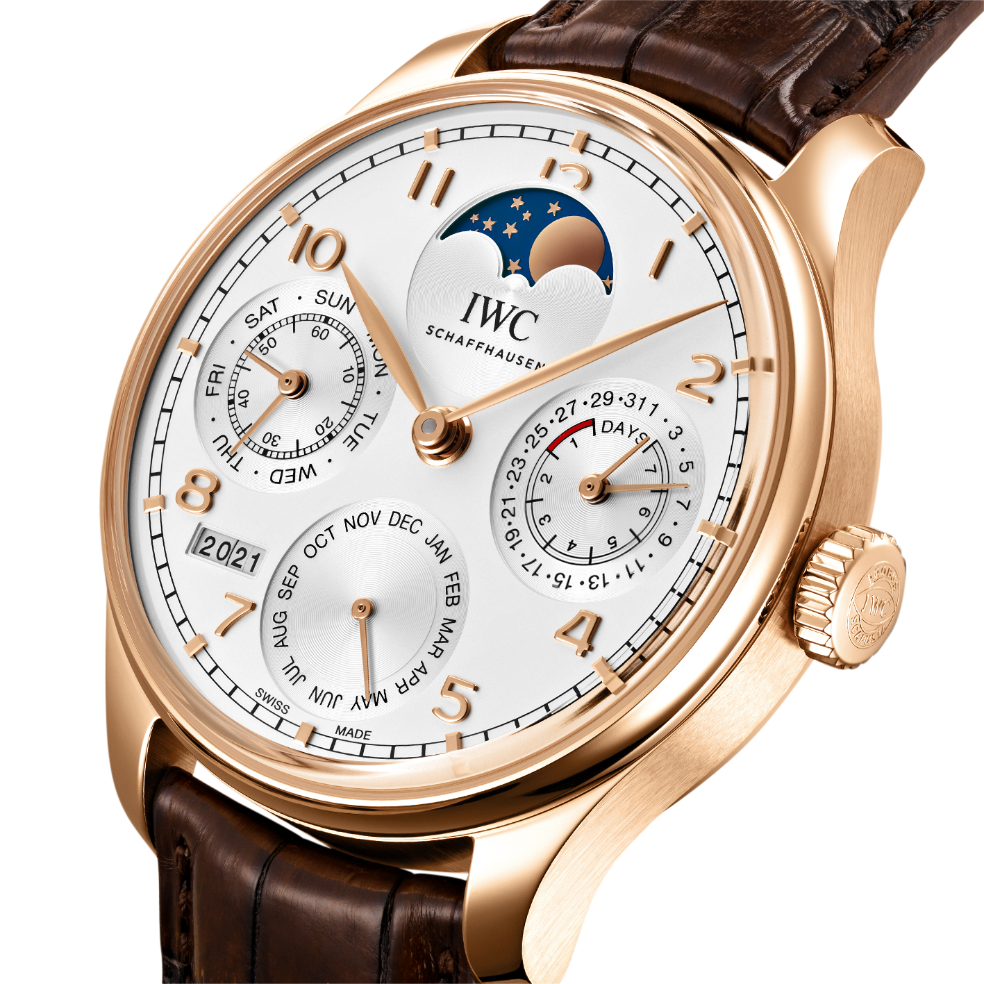 18 ct Red Gold Case. Diameter 44.2 mm. Dark Brown Alligator Leather Strap by Santoni. Strap Width 22.0 mm.