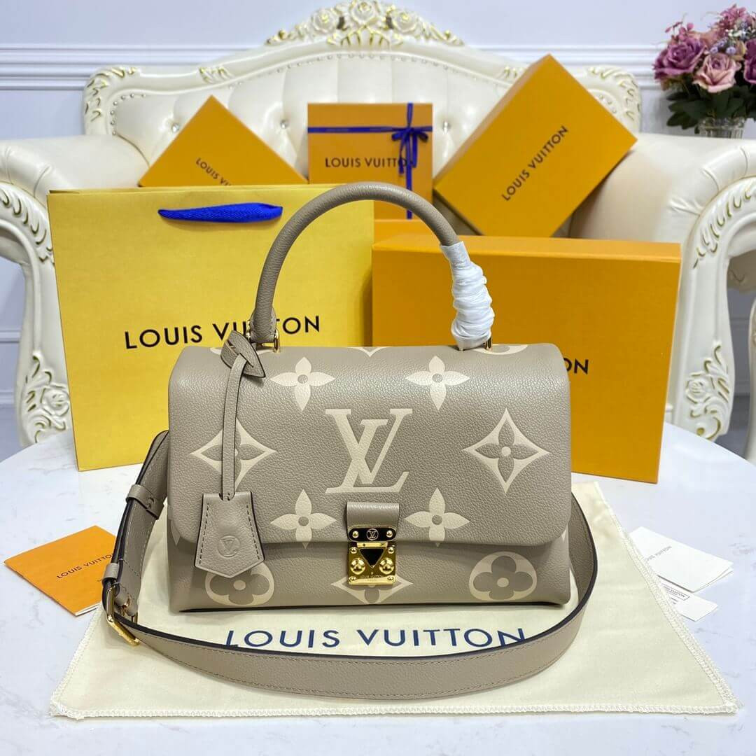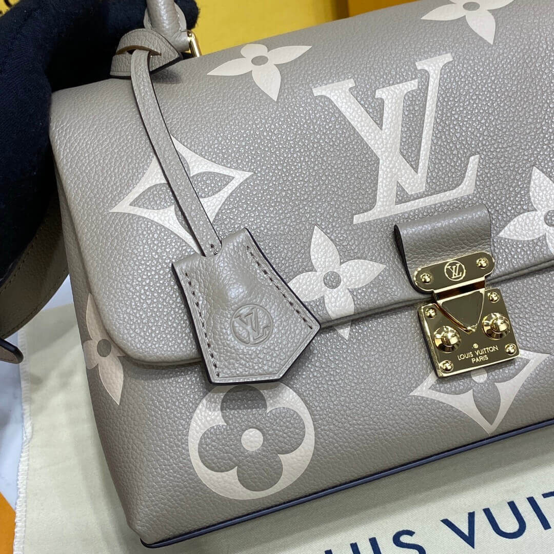With its single, articulated top handle and embossed Monogram Empreinte leather, this Madeleine MM handbag is the House’s latest, day-to-business, must-have accessory. The leather key bell and gold-color S-lock evoke the House’s travel heritage while the removable and adjustable strap provides carry options.