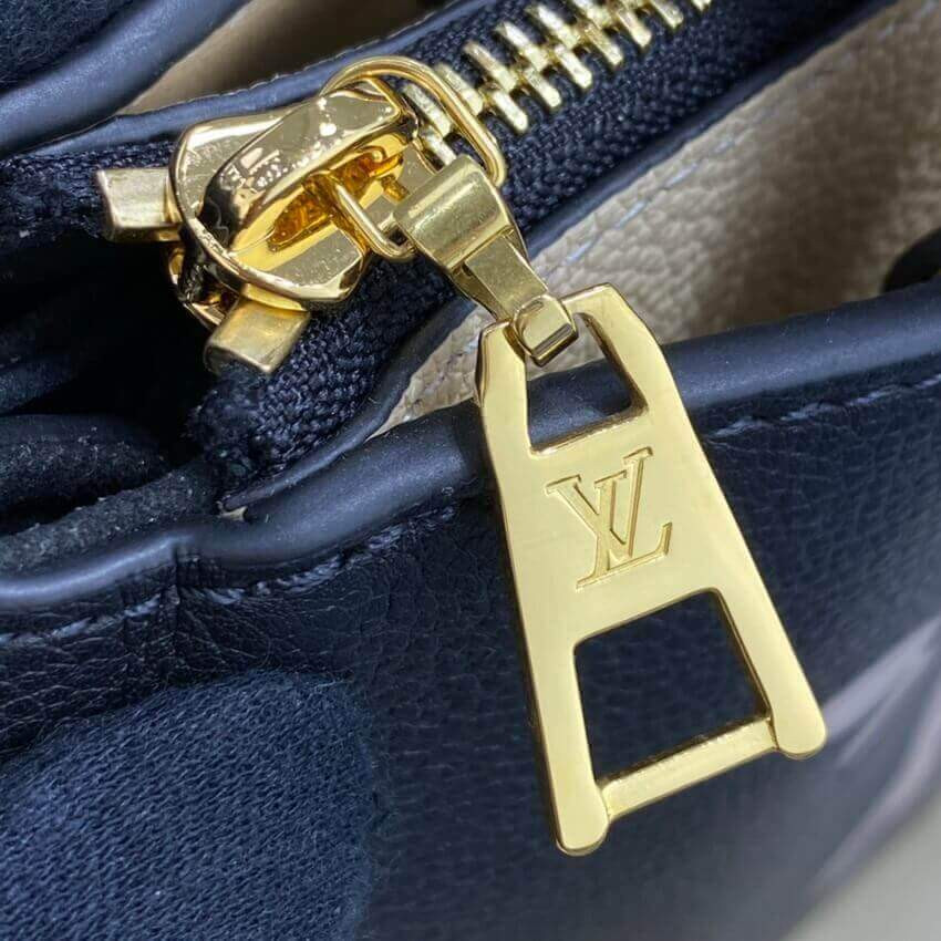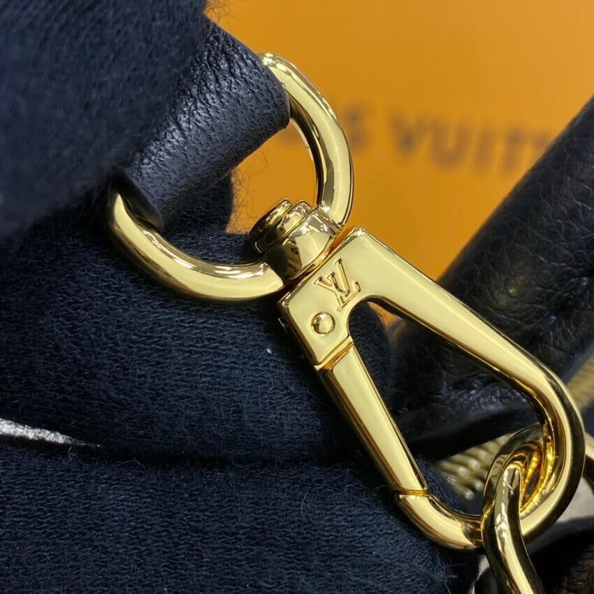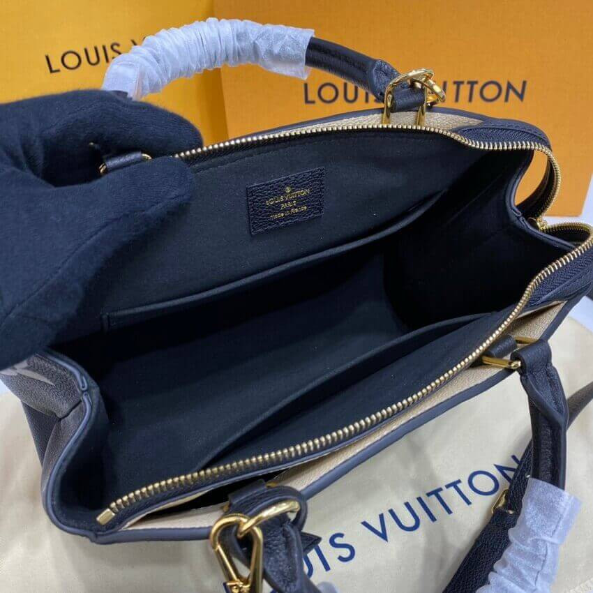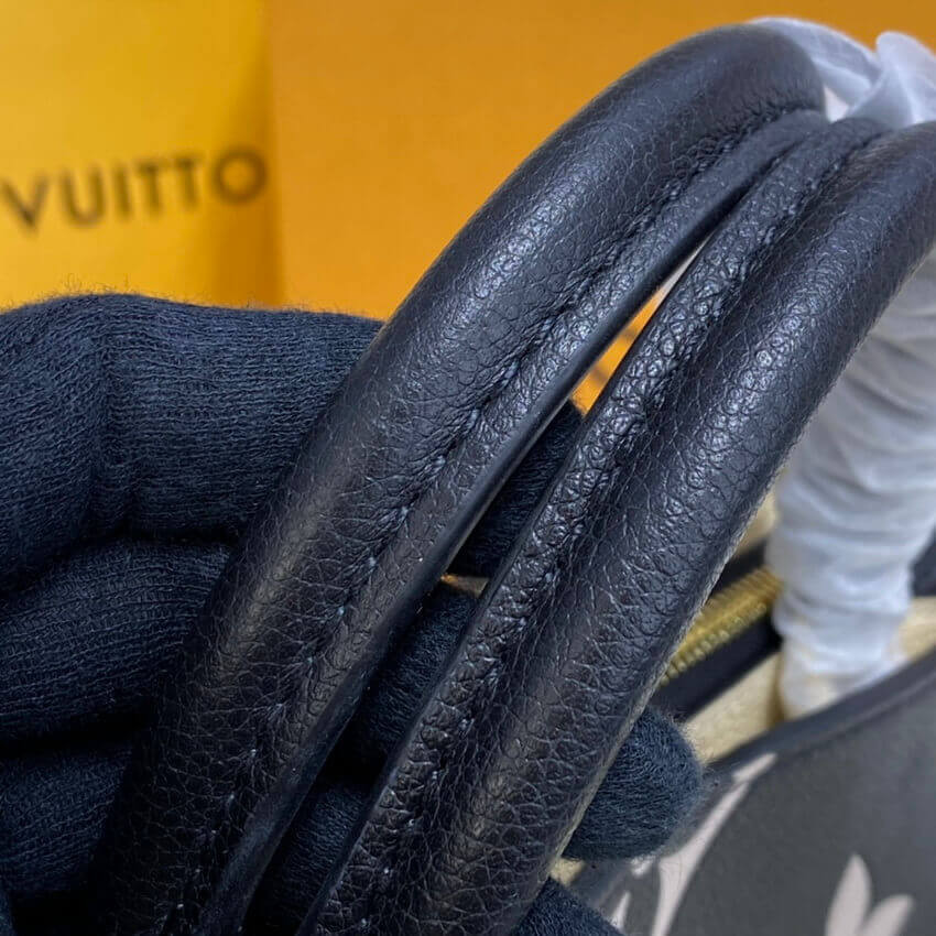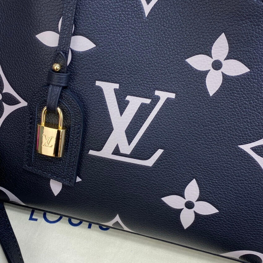The perfect everyday companion, the smart and sophisticated Petit Palais handbag is fashioned from grained leather with an oversized pattern of Monogram Flowers and LVs printed and embossed on it. The gold-color padlock and leather name tag bring to mind the House’s legacy of fine luggage. A detachable strap can be adjusted for comfortable shoulder and cross-body wear.