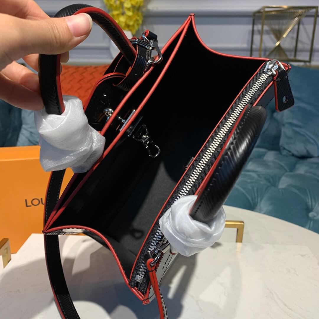 Inspired by iconic Vuitton luggage from 1901, this stunning statement bag is endowed with fashionable contrasted effect. This exclusive animation makes City Steamer a unique work of art.