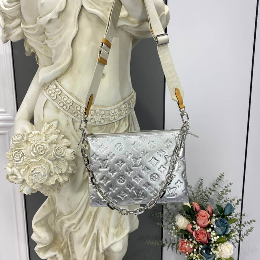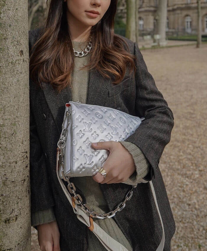 One of the stars of the Spring-Summer 2021 show, the Coussin PM handbag is made from Monogram-embossed puffy lambskin. It can be worn cross-body with the strap, as a chain baguette, or comfortably carried under the arm. The pillow-like Coussin bag brings style to the most simple look, giving it an effortless fashion-forward allure.