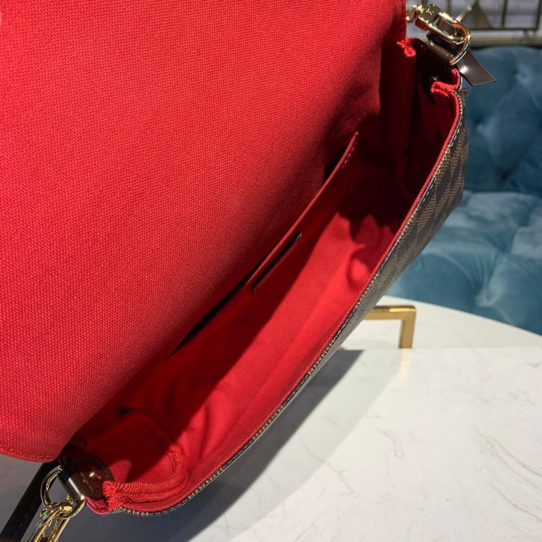 The versatile Pochette Favorite looks delightful in Damier Ebène canvas. Its pure, feminine shape makes it ideal for all occasions.