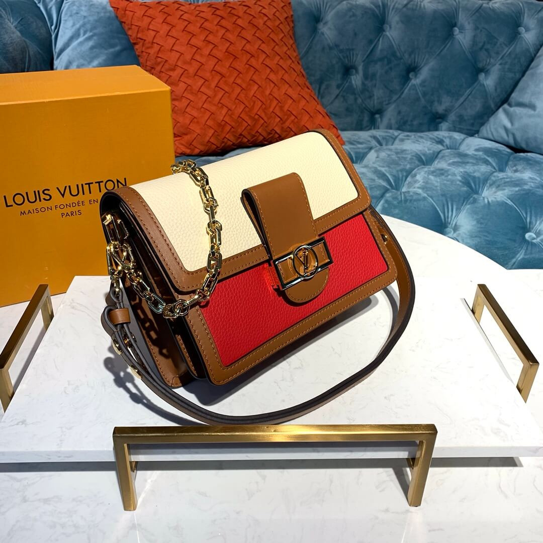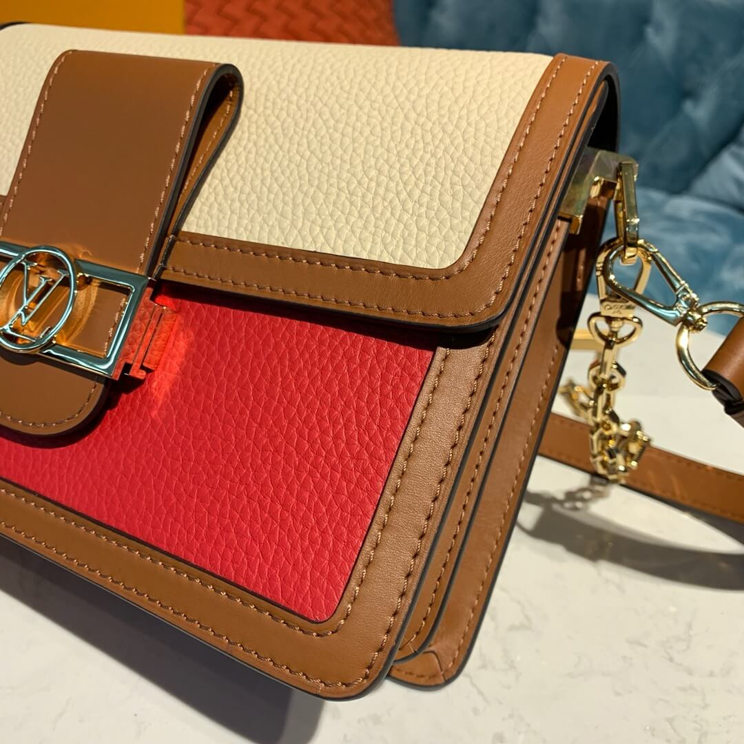 The Dauphine MM handbag steps out for Spring-Summer 2019 in this refined bicolor version. Crafted from full-grain Taurillon leather trimmed in smooth calfskin, it is fitted with a golden LV lock and hexagonal-link chain as well as a detachable and adjustable leather strap, for a full range of chic carry styles.