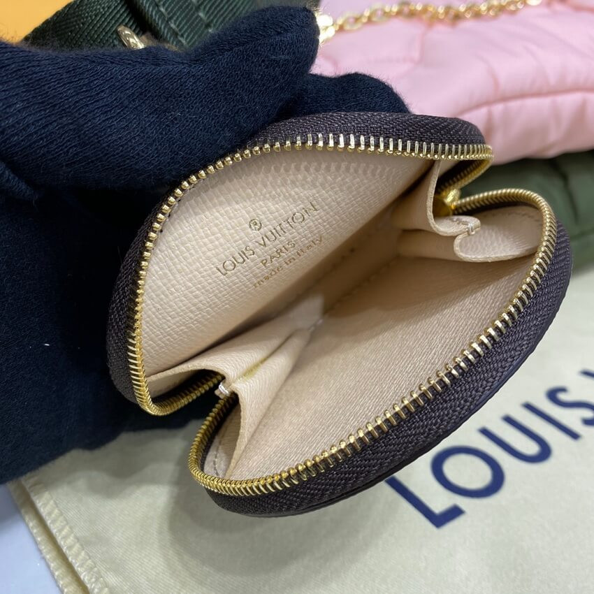 The hybrid Maxi Multi Pochette Accessoires handbag comes in eco-responsible Econyl regenerated nylon. The exterior is embroidered with a Monogram pattern, giving it a comfy padded aspect, and lined with Mini-Monogram printed Econyl. This cross-body bag boasts multiple pockets and compartments and combines a Pochette Accessoires, a Mini Pochette Accessoires and a Round Coin Purse.