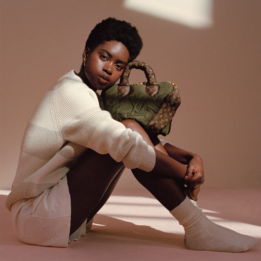 An example of the House’s commitment to eco-responsible craftsmanship, this Speedy Bandoulière 25 handbag is made from Econyl regenerated nylon, with an embroidered Monogram pattern. Its padded exterior makes it the perfect comfy accessory for winter. Every detail of the Speedy’s design is iconic, from its silhouette to the leather top handles and removable strap.