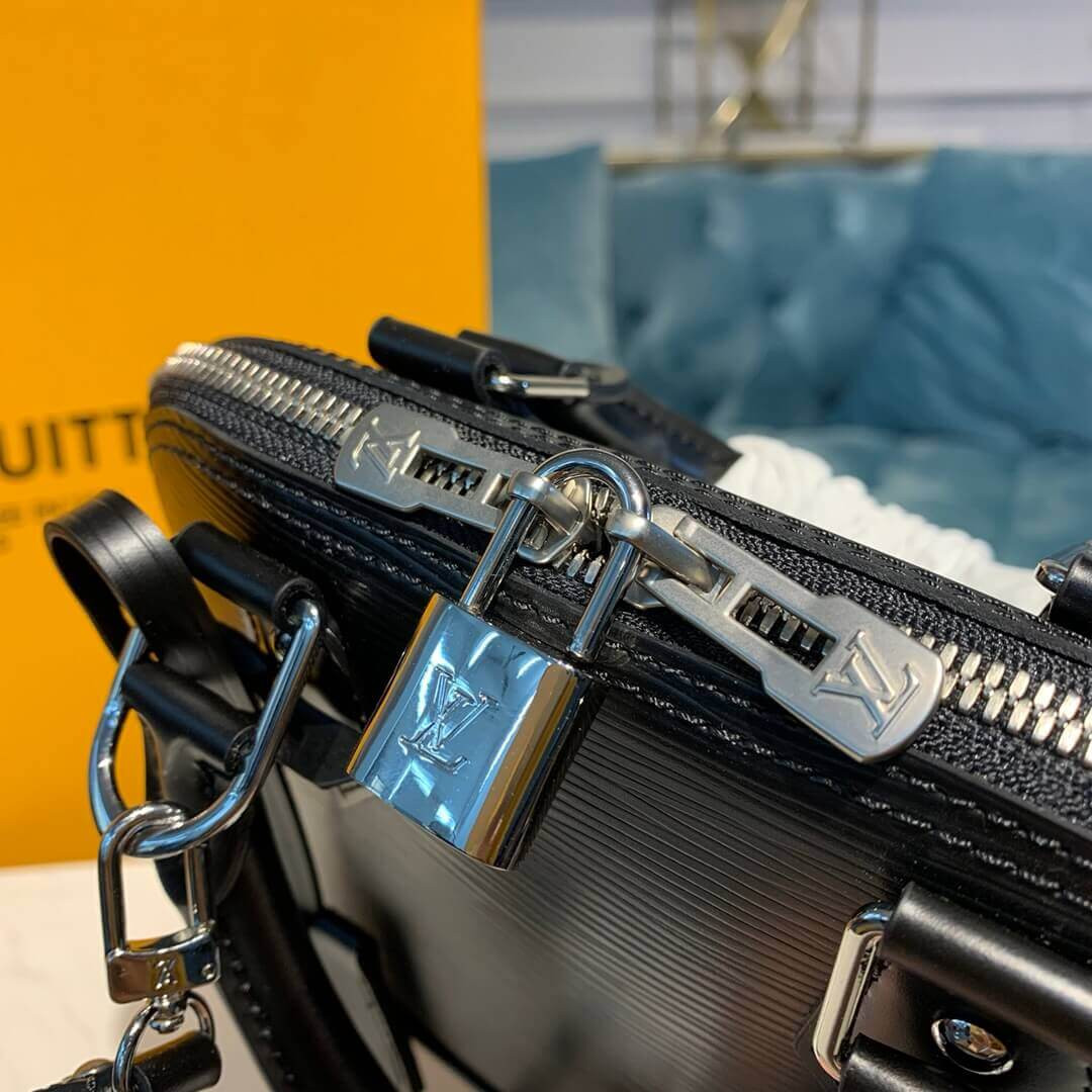The Alma BB handbag traces its pedigree to the Art Deco original, introduced in 1934. This model is crafted from emblematic Epi leather, a deep-dyed, textured cowhide exclusive to the House. Its unmistakable shape and signature details – padlock, hand-stitched Toron handles, key bell – make this compact bag a timeless classic. Fitted with a removable strap for cross-body wear.
