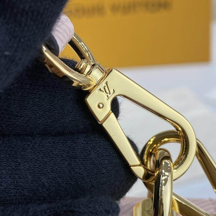 This season the Twist MM handbag is accessorized with a wide strap. Louis Vuitton is embroidered on one side and the geometric Karakoram design including Monogram Flowers on the other. Fashioned from Epi grained leather, it has a detachable bicolor Epi leather handle for hand carry. The gold-color LV Twist lock completes the design.