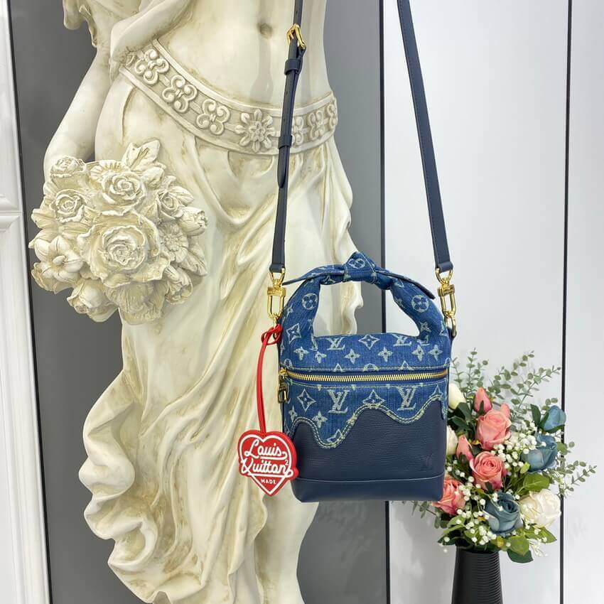 Part of the Pre-Spring 2022 capsule collection by Nigo, the Japanese Cruiser features the streetwear designer’s Monogram Drip look: a wave of blue Monogram denim “flowing” over sumptuous navy blue Taurillon leather. Compact but with plenty of room for everyday essentials, it’s brimming with original details like the handle formed by a kimono-style knot. A fashionable, ultra-functional city bag.