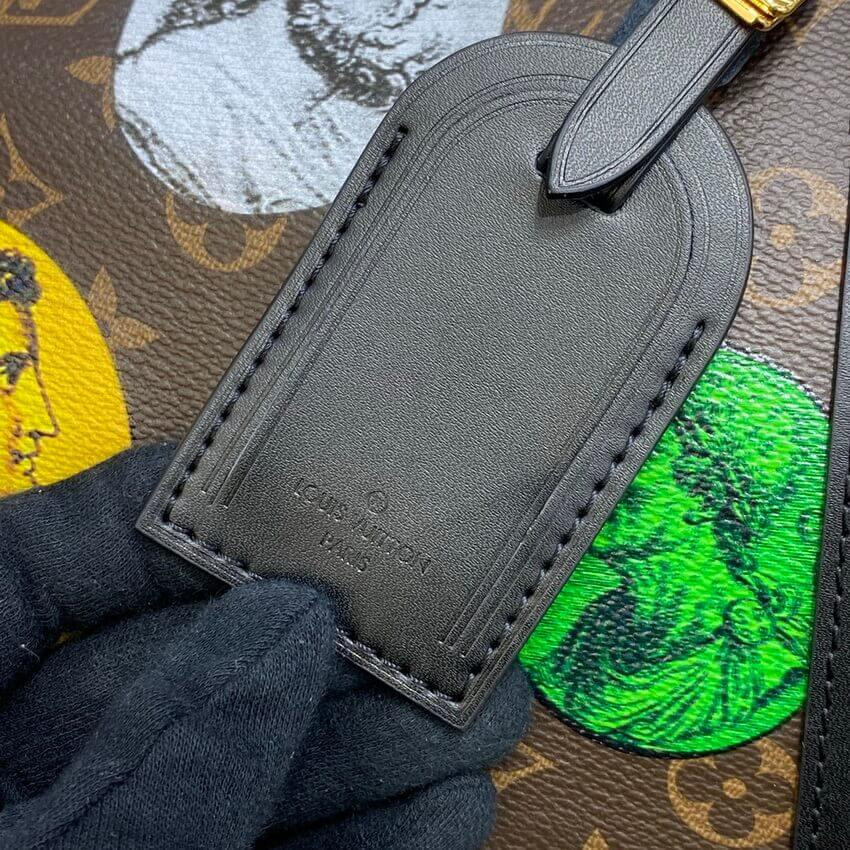 The Keepall Bandoulière 45 is made from Monogram canvas adorned with brightly colored and differently sized prints of ancient coins from the collection of Italian artist Piero Fornasetti. The portraits in profile on the coins evoke the cameo and bring a vibrant feel. This bag is large enough to hold everything needed for an overnight getaway.