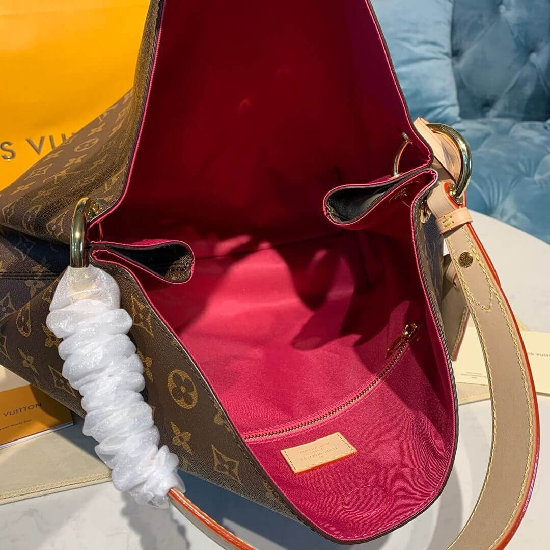 The Graceful MM hobo in classic Monogram canvas is an extra-roomy yet lightweight bag to carry every day. Natural cowhide leather detailing and shiny golden hardware add a refined, signature touch. The body-friendly design combines with a supple, flat handle for stylish and comfortable over-the-shoulder wear. The magnetic closure and zipped inside pocket keep belongings secure.