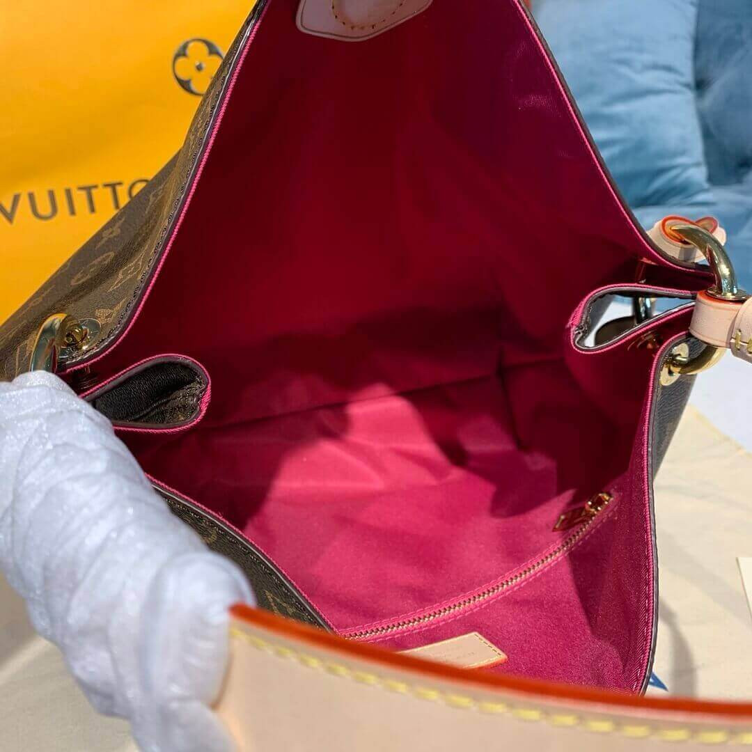 The Graceful PM hobo in classic Monogram canvas is a lightweight, roomy bag to carry every day. Natural cowhide leather detailing and golden hardware add a refined touch. The body-friendly design combines with a supple, flat handle for stylish and comfortable over-the-shoulder wear. The magnetic closure and zipped inside pocket keep belongings secure.