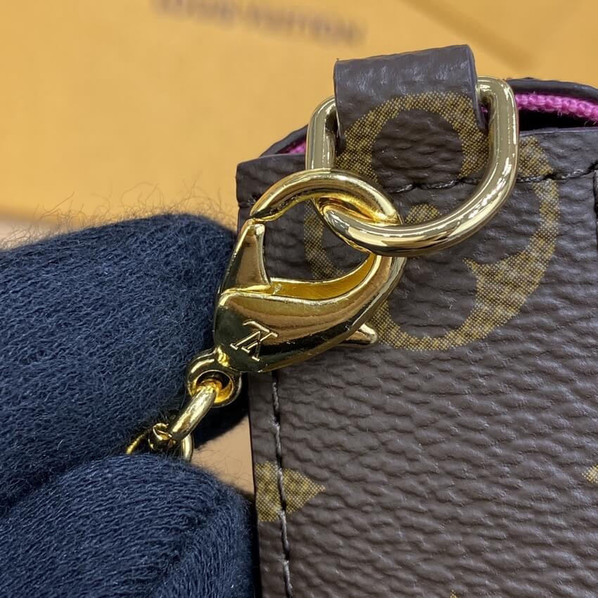 The Félicie Pochette in Monogram canvas is decorated with a print of Louis Vuitton's Vivienne mascot on Hollywood Drive, with its LV Diner, palm trees, and famous California bear in a convertible. This seasonal Félicie also features two removable pockets and can be carried as a clutch or worn on the shoulder or cross-body.