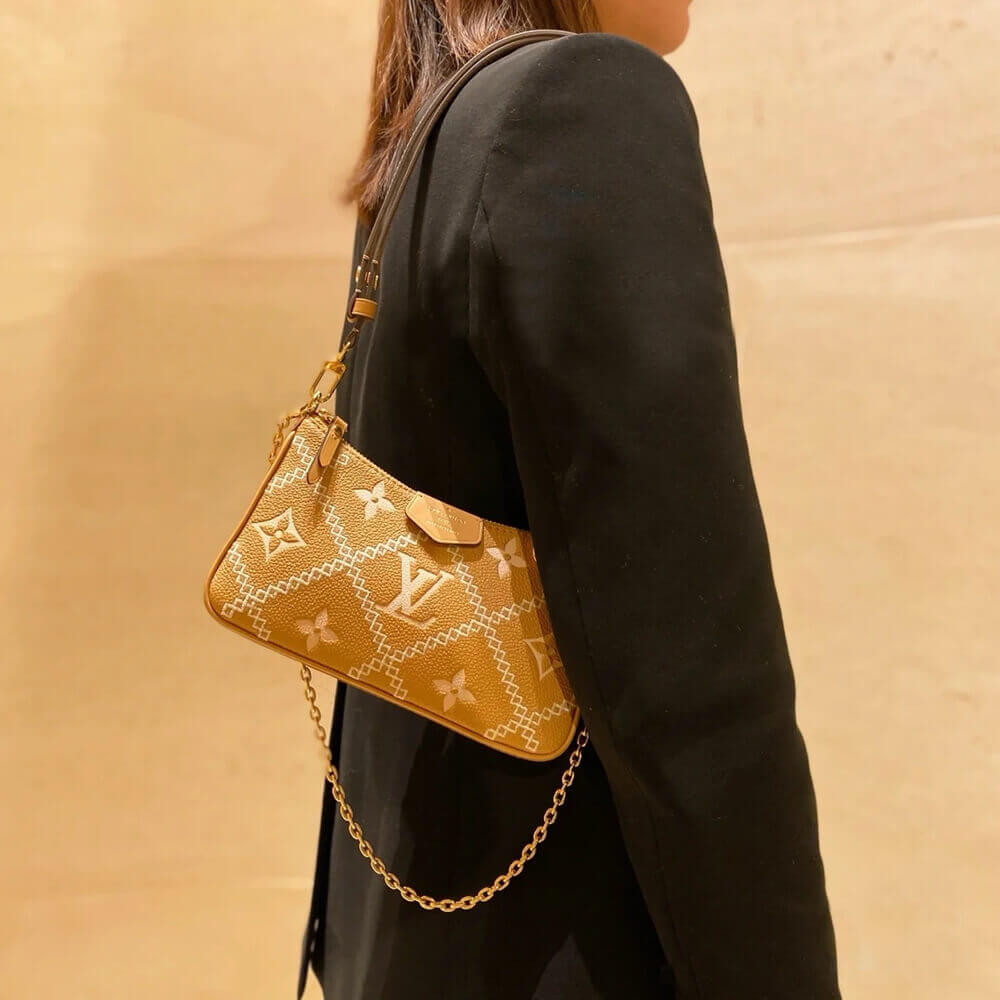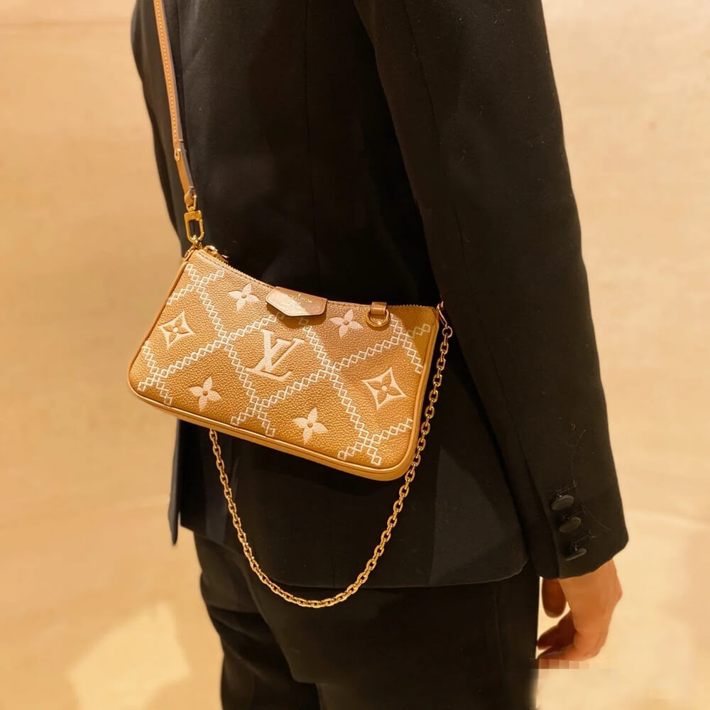 For Spring 2022, the Easy Pouch On Strap is made from Monogram Empreinte leather. The sleek design lends itself beautifully to the embossed Monogram pattern on the supple Empreinte leather. It can be worn on the shoulder, with the chain or the strap for a short carry or cross-body as the leather strap is adjustable.