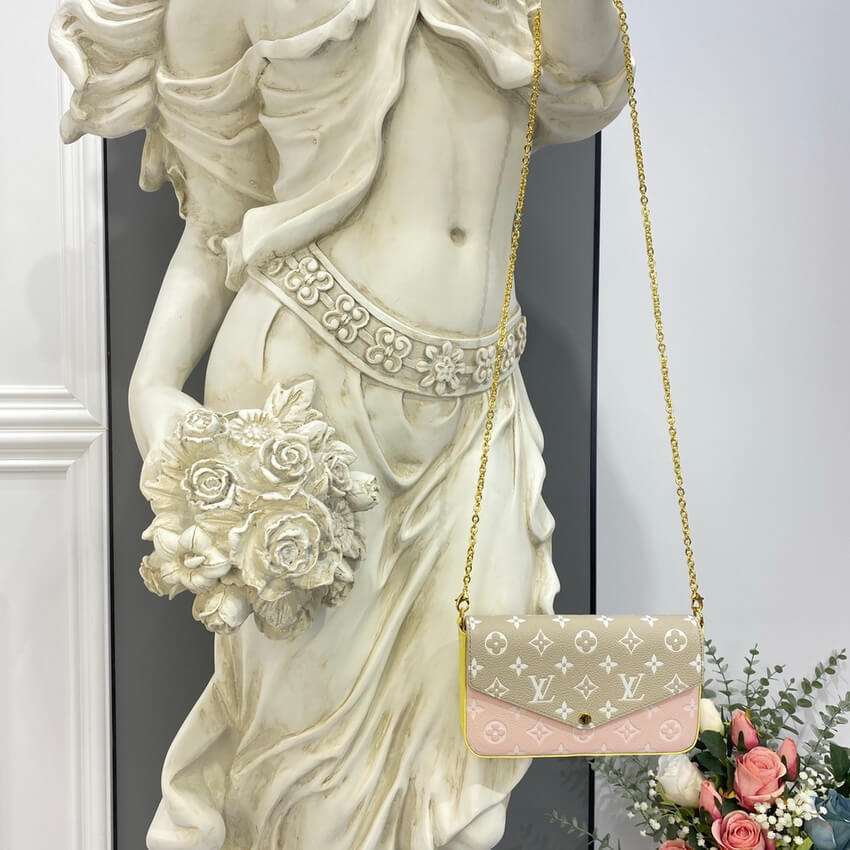 The Félicie Pochette is interpreted in three different shades of Monogram Empreinte leather for the Spring in the City capsule collection. With its two removable pockets - one zipped, one flat - this flap pouch is a stylish and versatile accessory. It can be carried in the hand, on the shoulder or across the body thanks to its removable chain.
