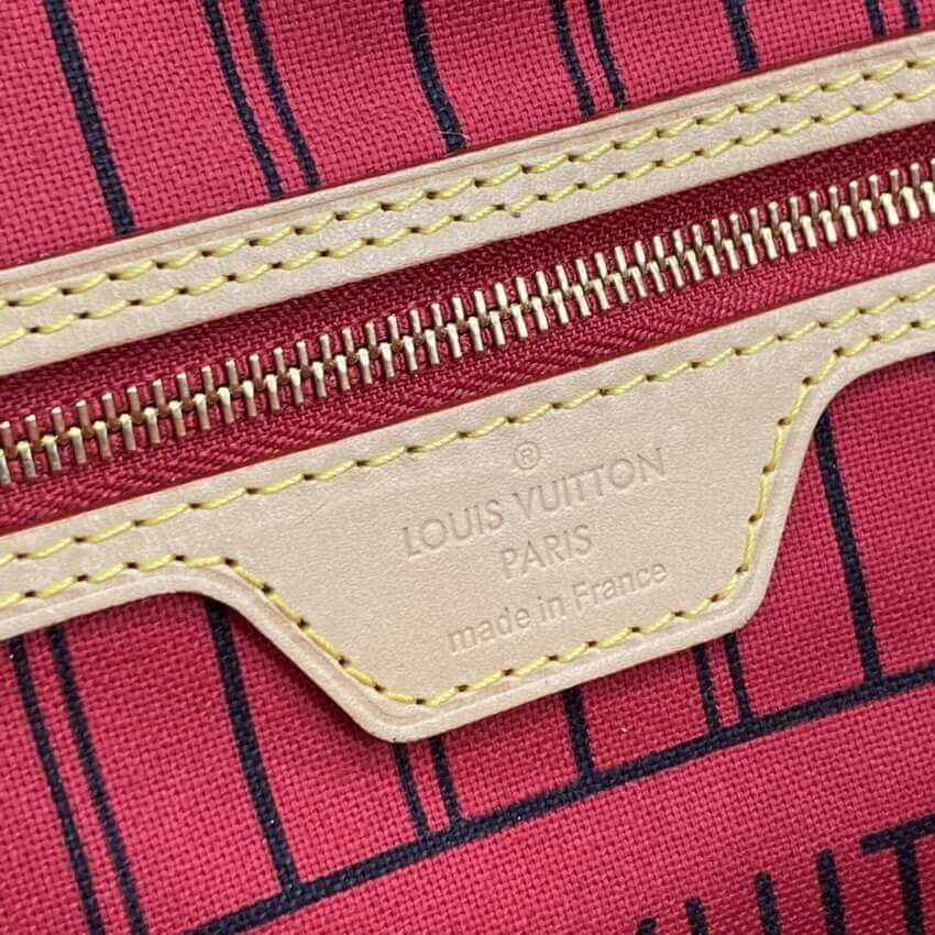 The Neverfull PM tote pairs timeless design with heritage details. Crafted from Monogram canvas with natural cowhide trim, it is capacious yet not bulky, with side laces that cinch for a sleek allure or loosen for a casual look. Slim, comfortable handles slip easily over the shoulder or arm. Lined in colorful textile, it features a removable pouch which can be used as a clutch or an extra pocket.