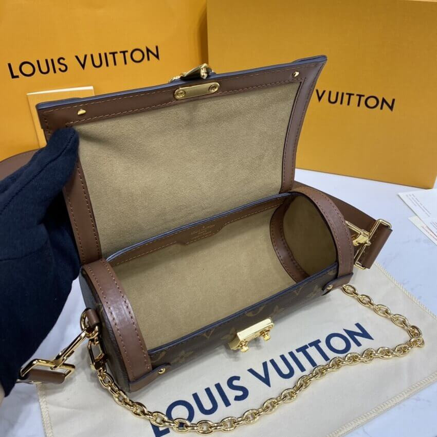 Nicolas Ghesquière introduces a new shape – both feminine and casual – inspired by Louis Vuitton’s archives: the Papillon Trunk handbag. The iconic Papillon duffle bag is transformed into a trendy semi-rigid baguette. The S-Lock, LV-embossed trunk trimmings and studs pay homage to the House’s trunkmaking beginnings.