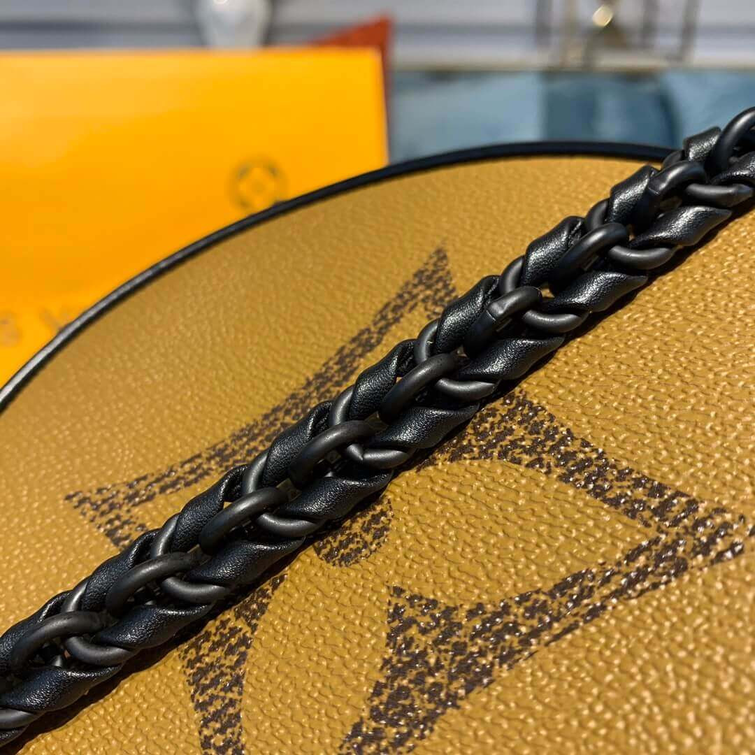 The new Boursicot Boîte Chapeau is part of Nicolas Ghesquière’s theme of miniature handbags for Spring-Summer 2020. Inspired by vintage purses, it combines Louis Vuitton’s signature Giant Monogram Reverse canvas with a finely crafted closing system. A compact but practical bag that adds a distinctive touch to any look.