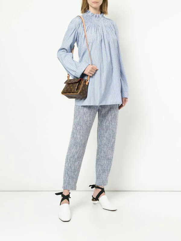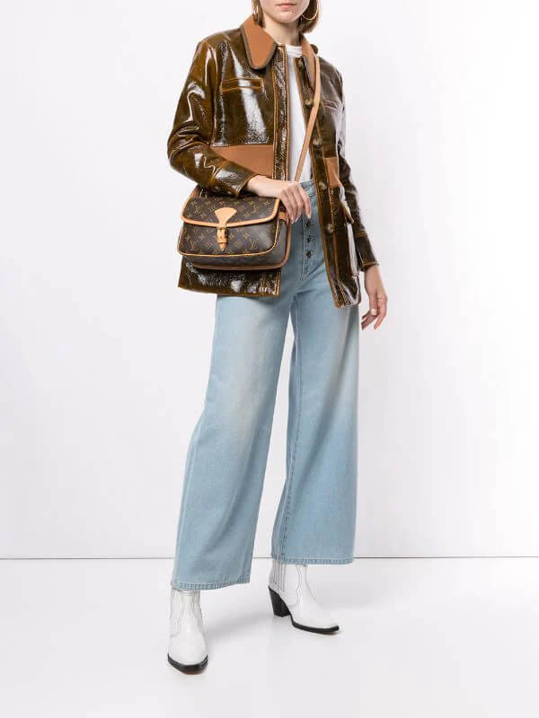 - Monogram canvas, adjustable leather shoulder strap, brown canvas lining