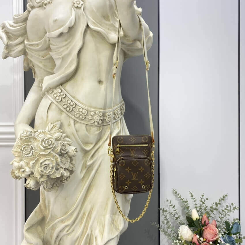 The Utility Phone Sleeve in Monogram canvas is an on-trend, multi-tasking bag for life on the go. It adapts to different sizes of smartphone and can also hold essentials like cards, cash or keys in its secure, zipped pockets. Both the adjustable canvas strap and the metal chain are removable and offer multiple carry options.
