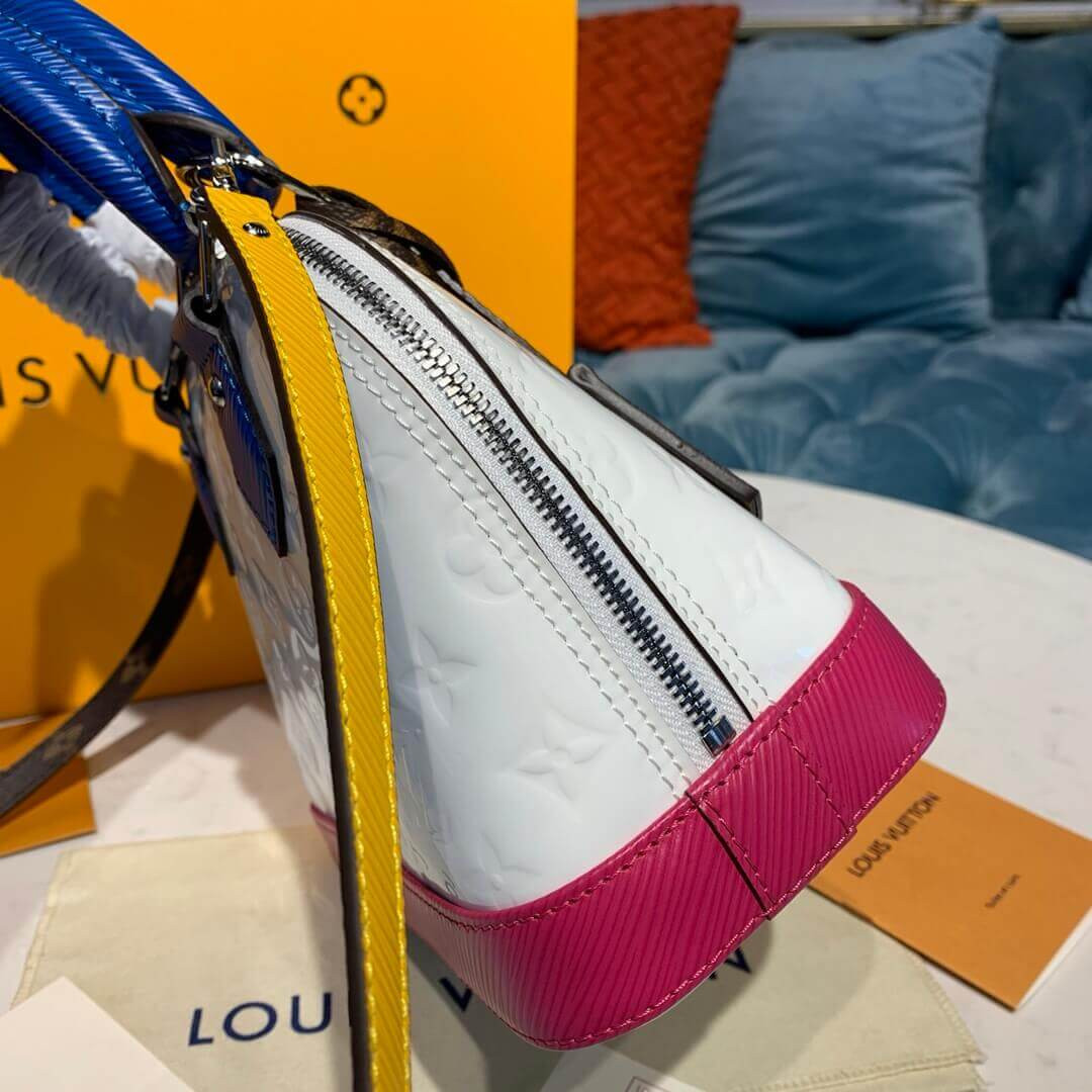 The Alma BB handbag traces its pedigree to the Art Deco original, introduced in 1934. This model is crafted from emblematic Epi leather, a deep-dyed, textured cowhide exclusive to the House. Its unmistakable shape and signature details – padlock, hand-stitched Toron handles, key bell – make this compact bag a timeless classic. Fitted with a removable strap for cross-body wear.