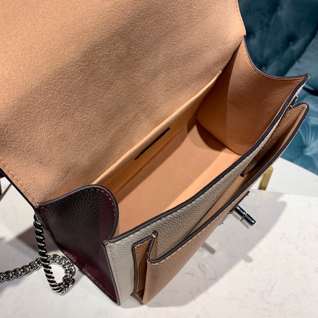 For Spring Summer 2019, the Mylockme BB bag comes in a soft summery colorway of pink, off-white, and burgundy calfskin. The luminous color combination is completed by the silver color of the signature LV turn lock and the adjustable chain strap. The chain’s leather pad brings comfortable to shoulder carry and crossbody wear.