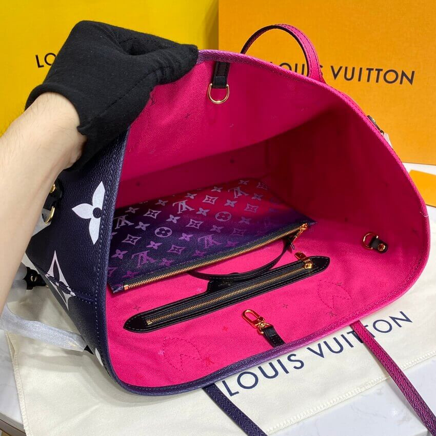 For Spring 2022, the Neverfull MM tote in Monogram canvas sports a colorful gradient that will enliven every warm-weather ensemble. The bag’s roomy design makes it an ideal companion for busy lifestyles, worn on the shoulder or carried over the arm. A removable printed pouch does double duty as an extra pocket or casual little clutch.