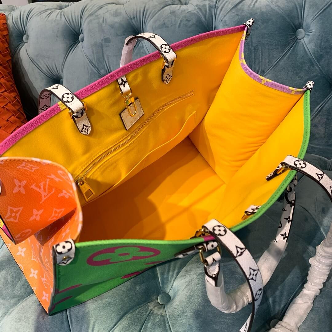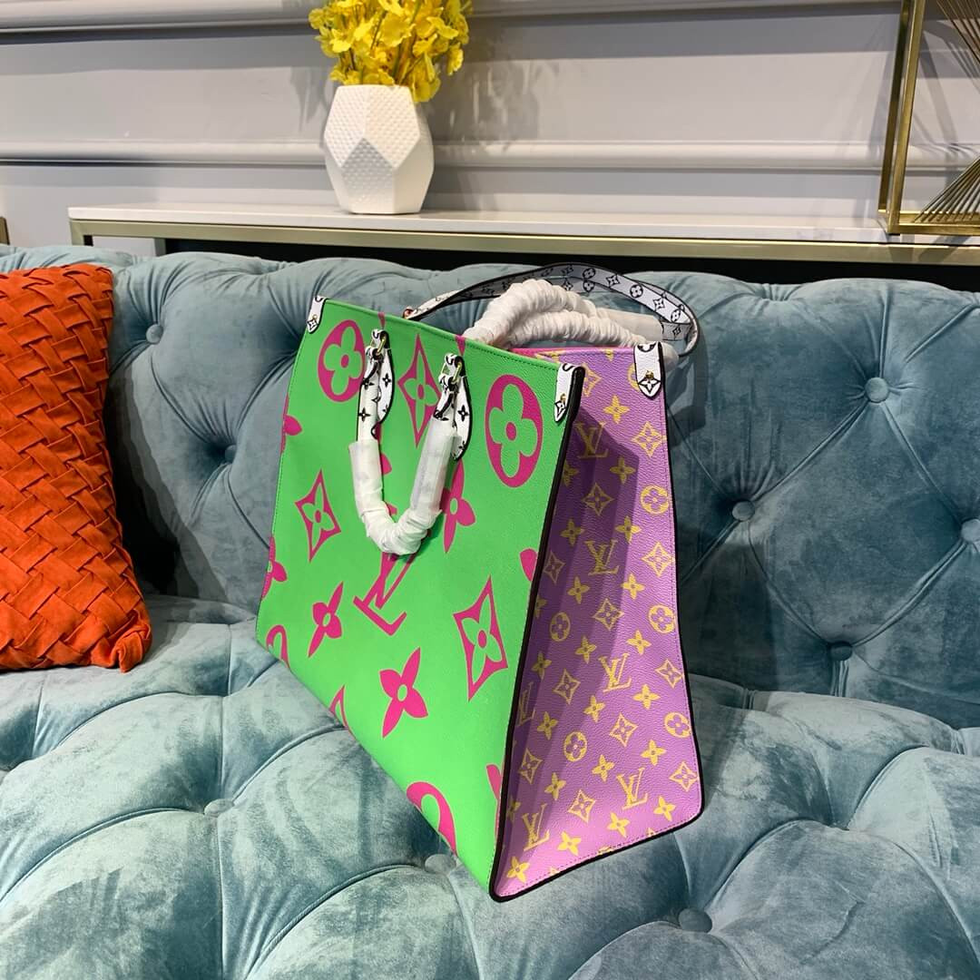 The aptly named Onthego tote bag goes shopping, to work or off for the weekend. With its ample capacity and oversized Monogram motif (contrasted with Mini Monogram trim) this modern carryall makes a punchy fashion statement. Articulated Toron handles and two shoulder straps ensure a comfortable carry, all day long.