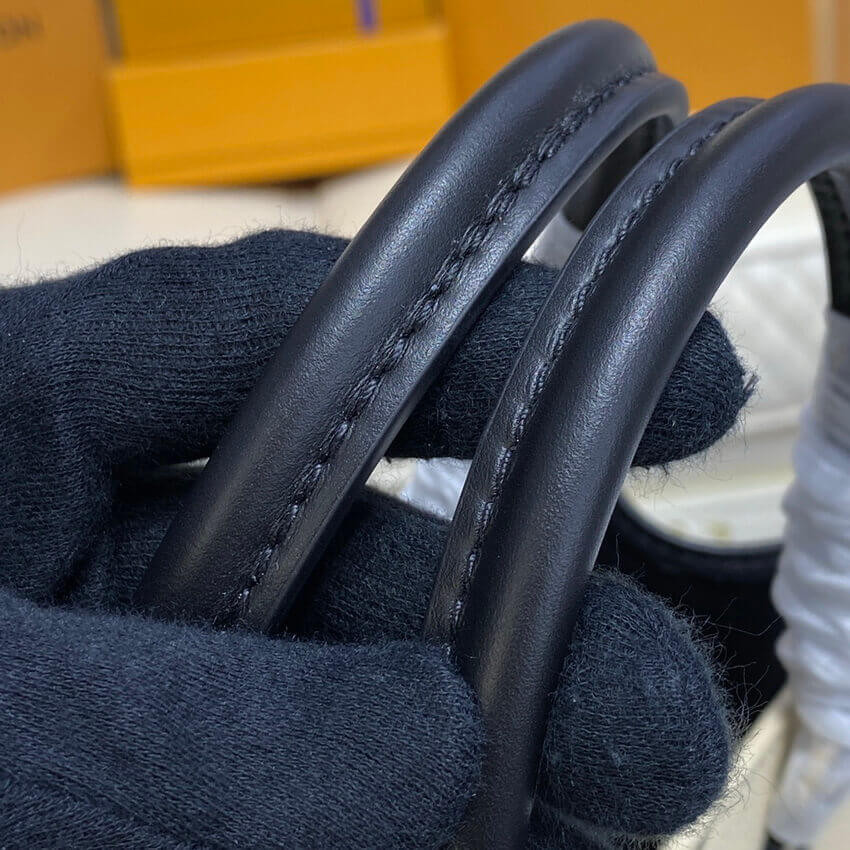 Beautiful, new Louis Vuitton Onthego MM tote bag in cream and black with black microfiber lining and gold-color hardware. Monogram Empreinte embroidered and embossed supple grained leather with a double handle, interior double pockets and and interior zip pocket.