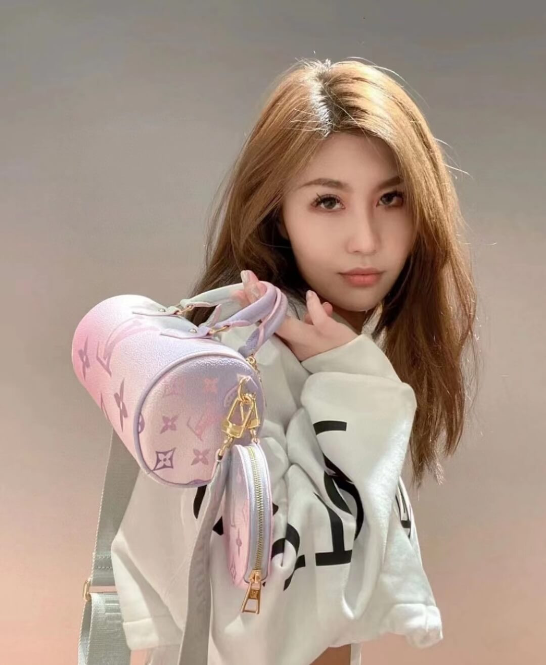 The charming Papillon BB handbag is arrayed for Spring in a new gradient colorway of Monogram canvas, featuring a graphic oversize motif. A round coin purse snaps on to the wide jacquard strap, adding a playful touch. For a dressier look, the strap can be detached and the bag carried by its classic Toron top handles.