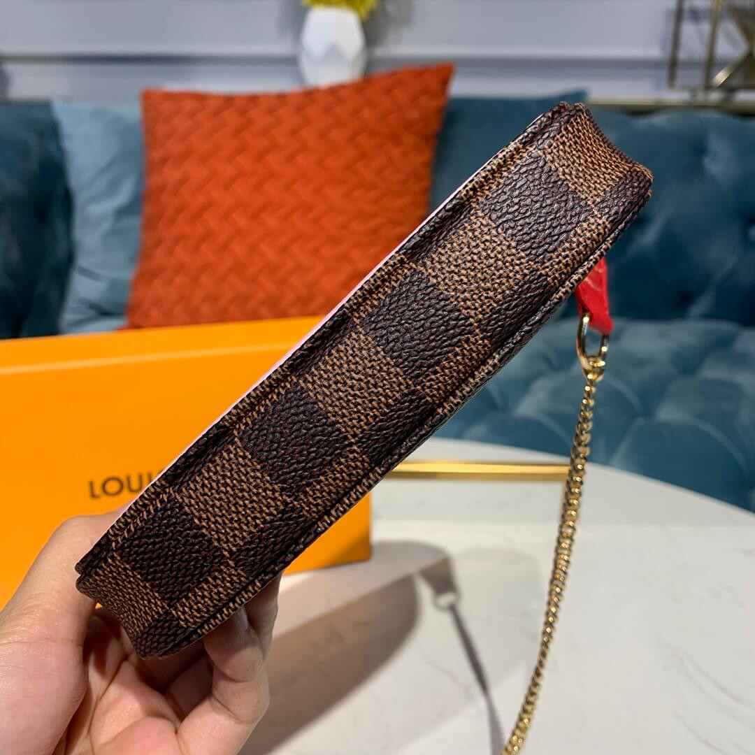 For the Holiday season, this collector's edition of the Mini Pochette Accessoires combines historic Damier canvas with a colorful illustration playfully celebrating Louis Vuitton's travel heritage. The House mascot Vivienne is pictured driving by the Eiffel Tower in Paris. This pouch will appeal to travelers, Damier lovers and heritage connoisseurs.