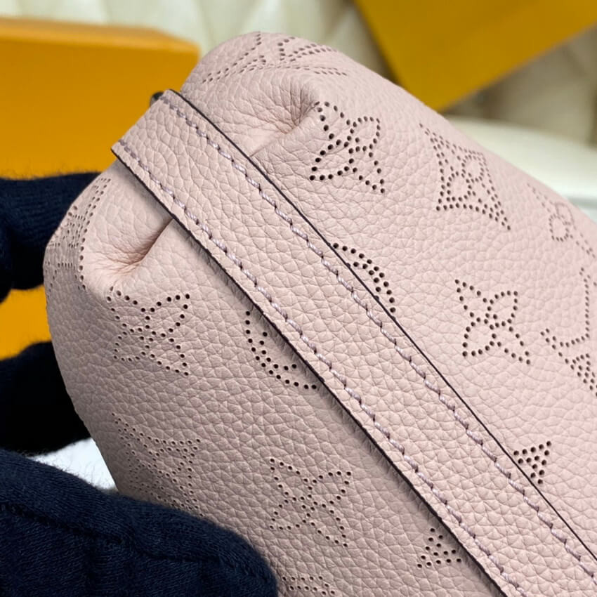 The Scala mini pouch has a soft, body-friendly shape inspired by the folds and pleats of drapery. It is crafted from supple Mahina calf leather, whose delicate perforations replicate Louis Vuitton's iconic Monogram pattern. Large enough to hold everyday essentials, it has a removable, adjustable strap, enabling it to be carried in several different ways.